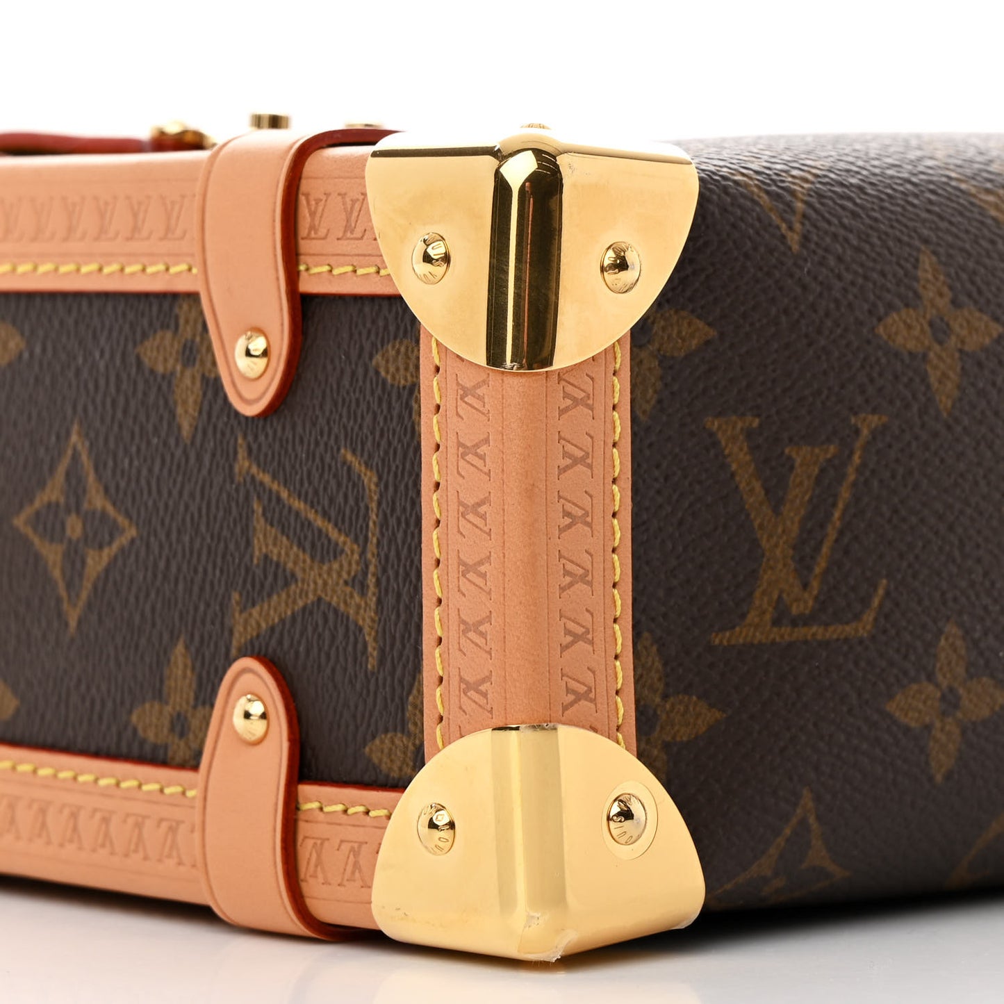 This is an authentic LOUIS VUITTON Monogram Side Trunk. This chic trunk is crafted of classic Louis Vuitton monogram canvas in brown. This side trunk features a vachetta shoulder strap, an optional vachetta top handle with gold hardware, and a lock on the front to hold the zipper in place when closed. The top zipper opens to a brown fabric interior.Follow this item for alerts. Louis Vuitton is a registered trademark of Louis Vuitton. FASHIONPHILE is not affiliated with Louis Vuitton.