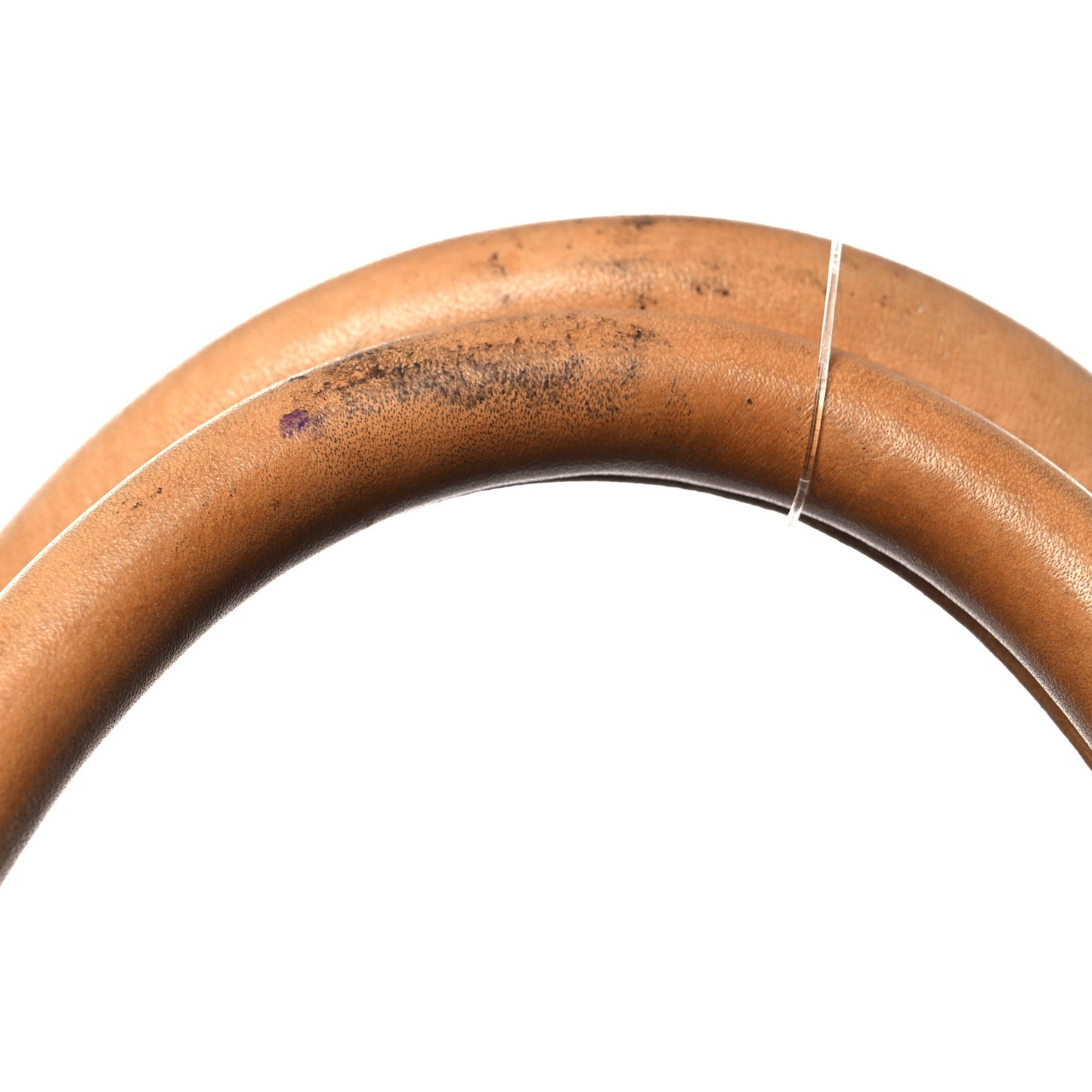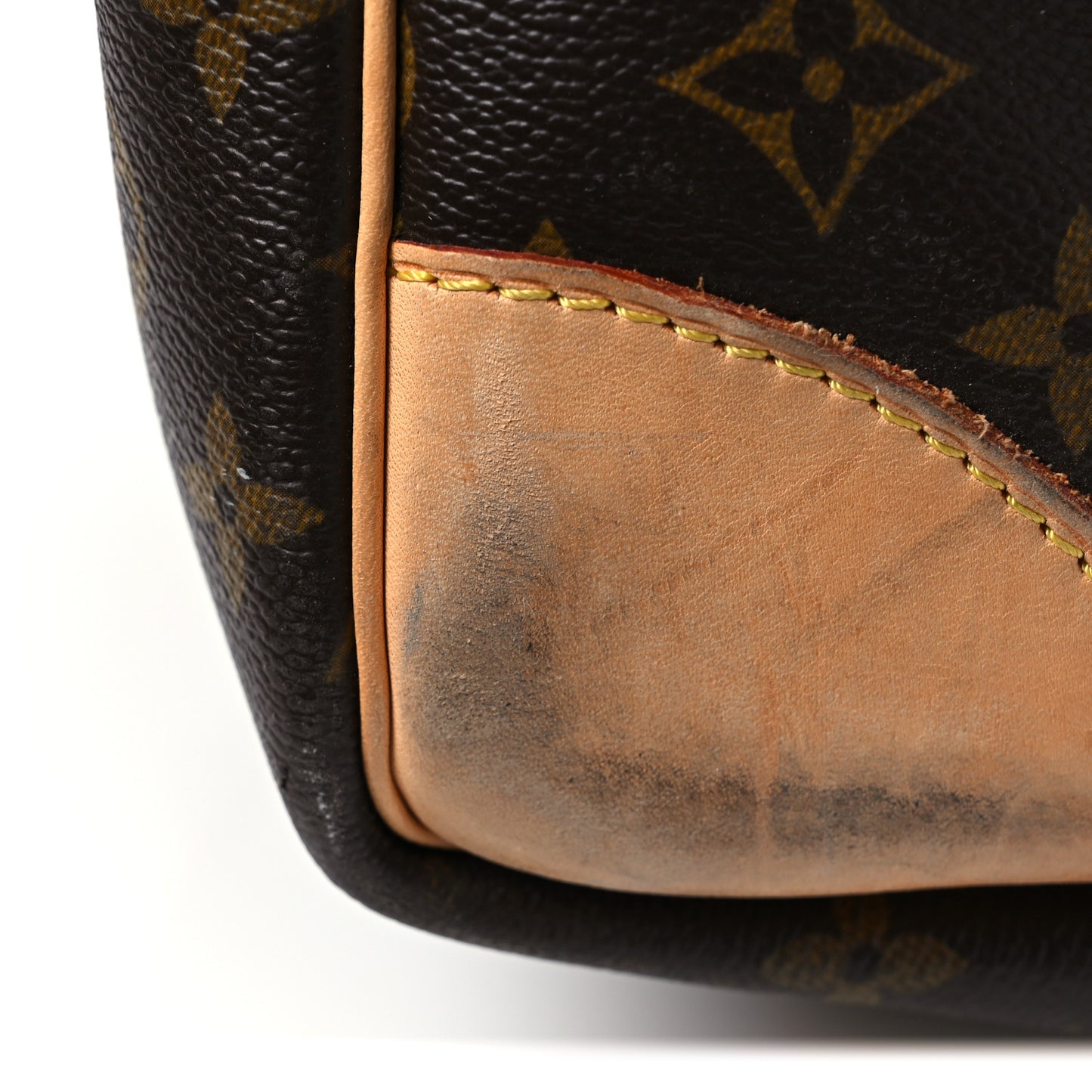 Handle: Edge wear, scuffs, patina of vachetta, liquid marks