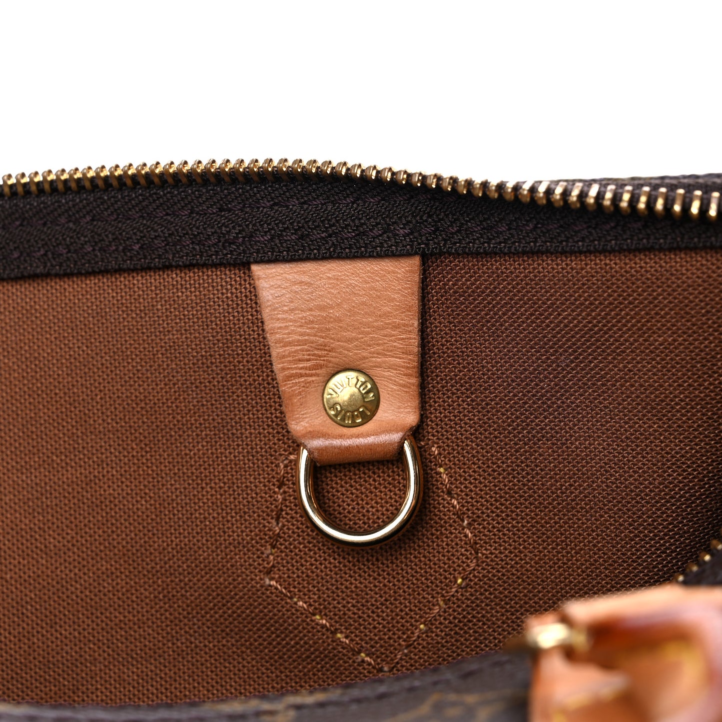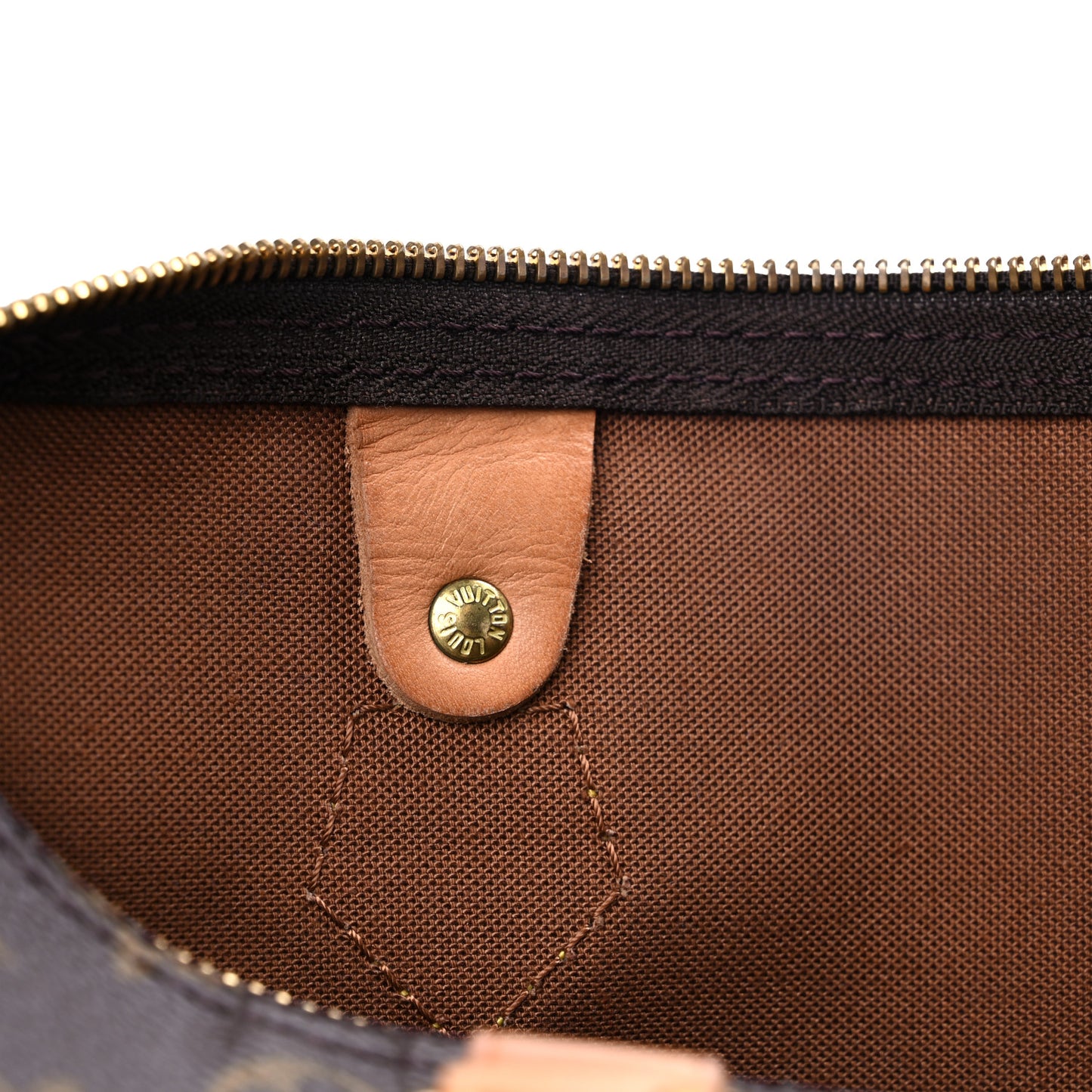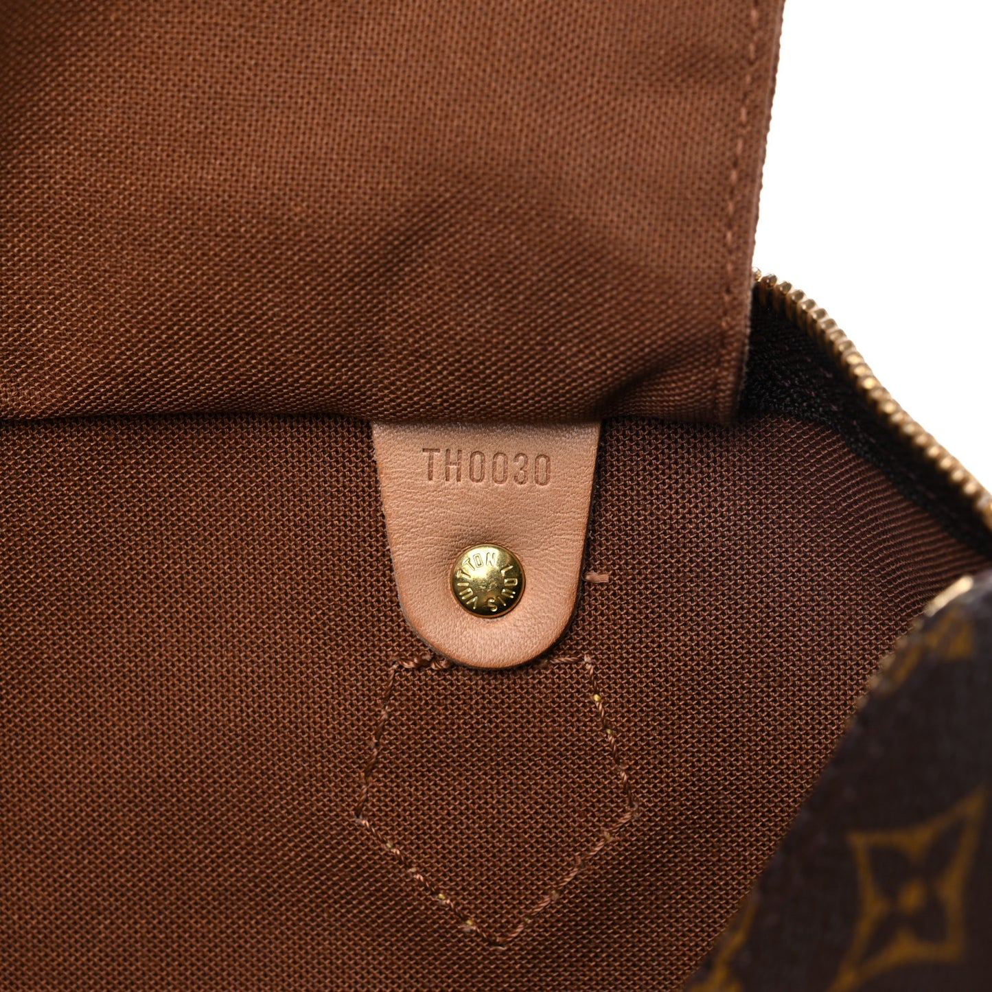 This is an authentic LOUIS VUITTON Monogram Speedy 30. This classic handbag is finely crafted of traditional Louis Vuitton monogram on coated canvas. The bag features vachetta cowhide leather trim, rolled top handles, and polished brass hardware. The top zipper opens to a cocoa brown fabric interior with a hanging patch pocket.Follow this item for alerts. Louis Vuitton is a registered trademark of Louis Vuitton. FASHIONPHILE is not affiliated with Louis Vuitton.