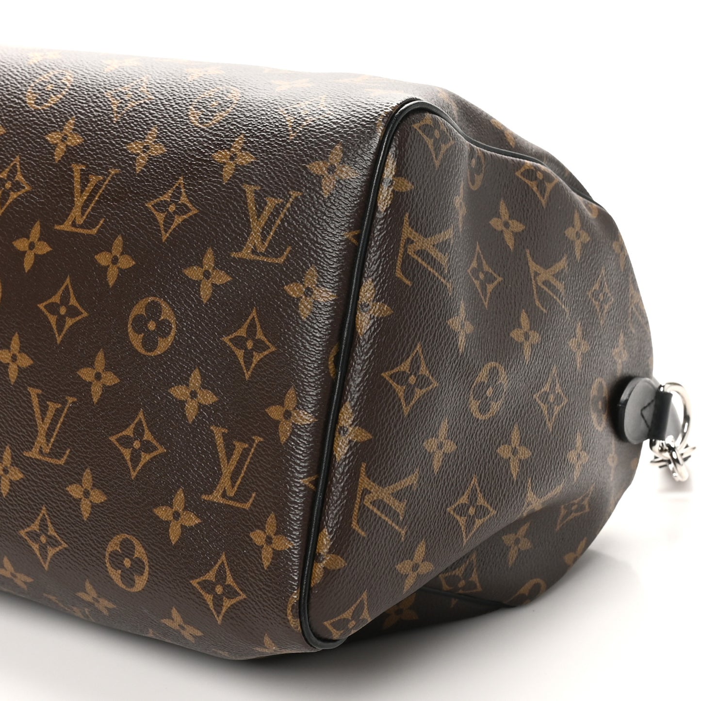 This is an authentic LOUIS VUITTON Monogram Speedy Soft 30 Dark. This bag is crafted of monogram toile dark brown canvas, black leather trim and top handles and silver hardware. This handbag features an optional shoulder strap and a removable chain strap. The top zippers open to a black leather interior with a zipper pocket.Follow this item for alerts. Louis Vuitton is a registered trademark of Louis Vuitton. FASHIONPHILE is not affiliated with Louis Vuitton.