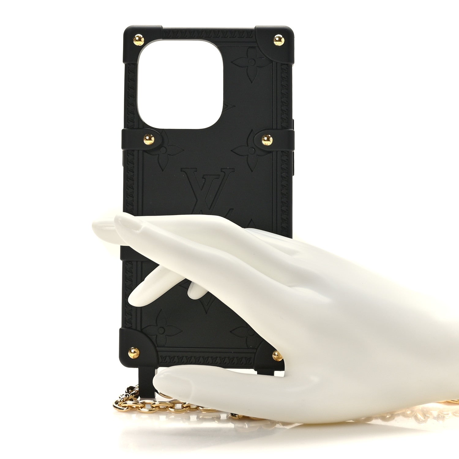 Louis Vuitton/ Accessories/ Phone/Tablet Case /Louis Vuitton Rubber Monogram Trunk With Chain iPhone 14 Pro Case Black