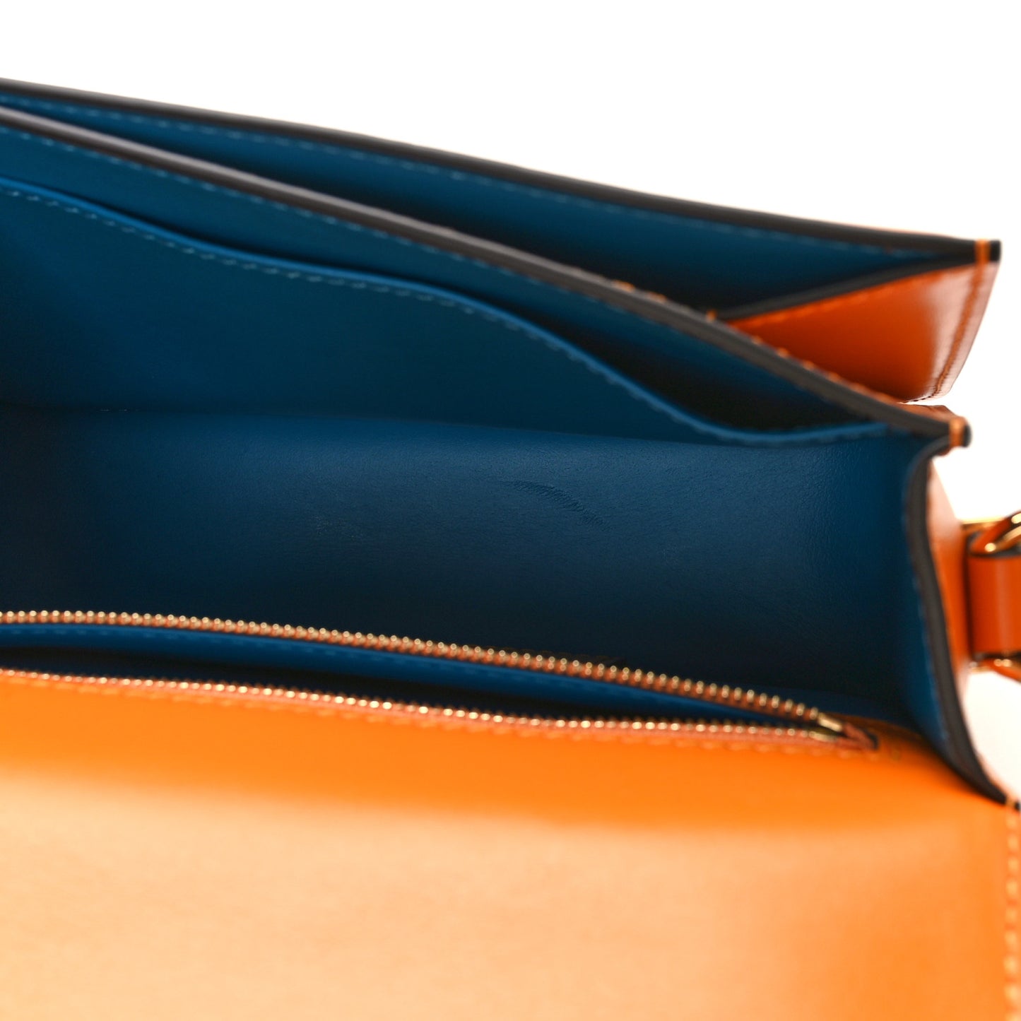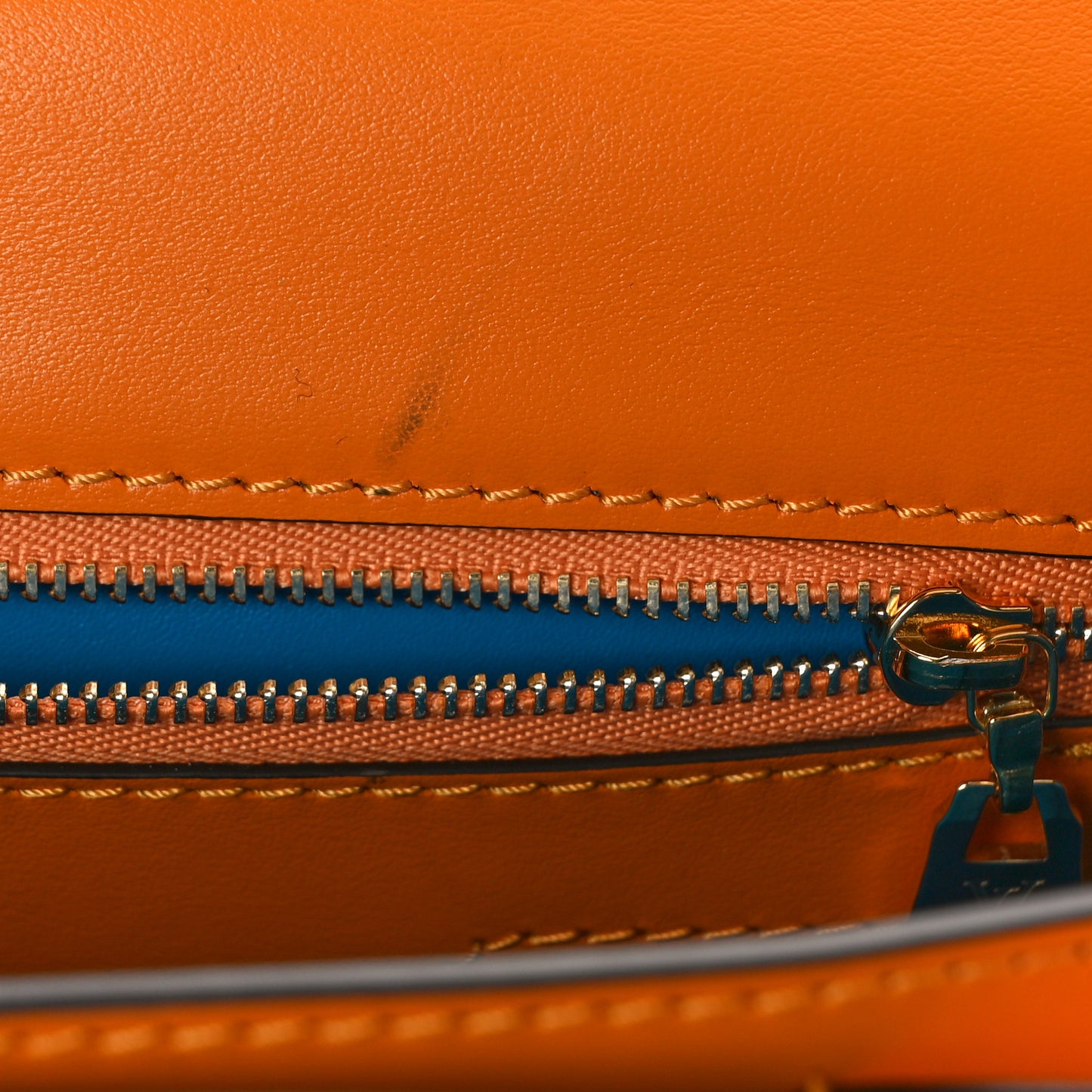 This is an authentic LOUIS VUITTON Smooth Calfskin LV Pont 9 in Summer Gold. This chic bag is crafted of calfskin leather in orange. The bag features a leather shoulder strap, and a LV logo circular medallion. The front flap has a magnetic closure that opens to a orange and blue leather interior with zippered and patch pockets.Follow this item for alerts. Louis Vuitton is a registered trademark of Louis Vuitton. FASHIONPHILE is not affiliated with Louis Vuitton.