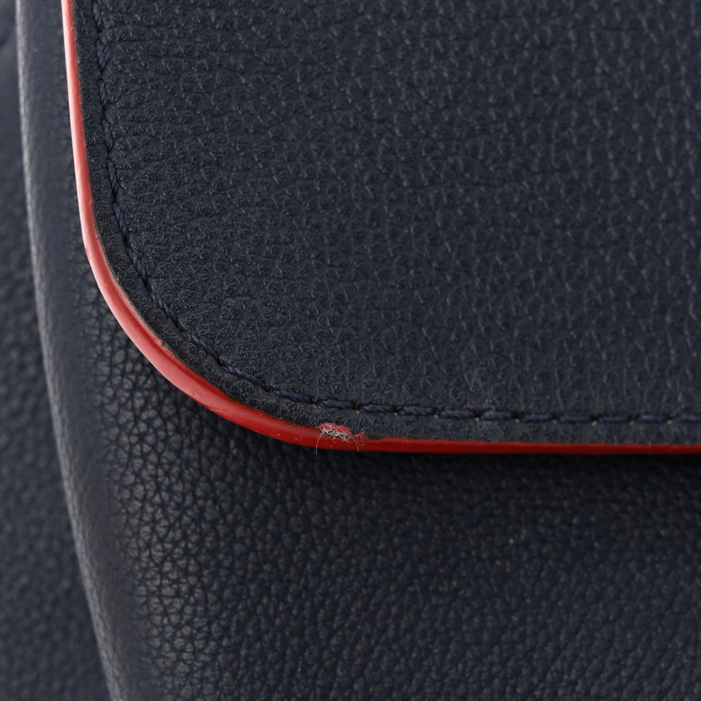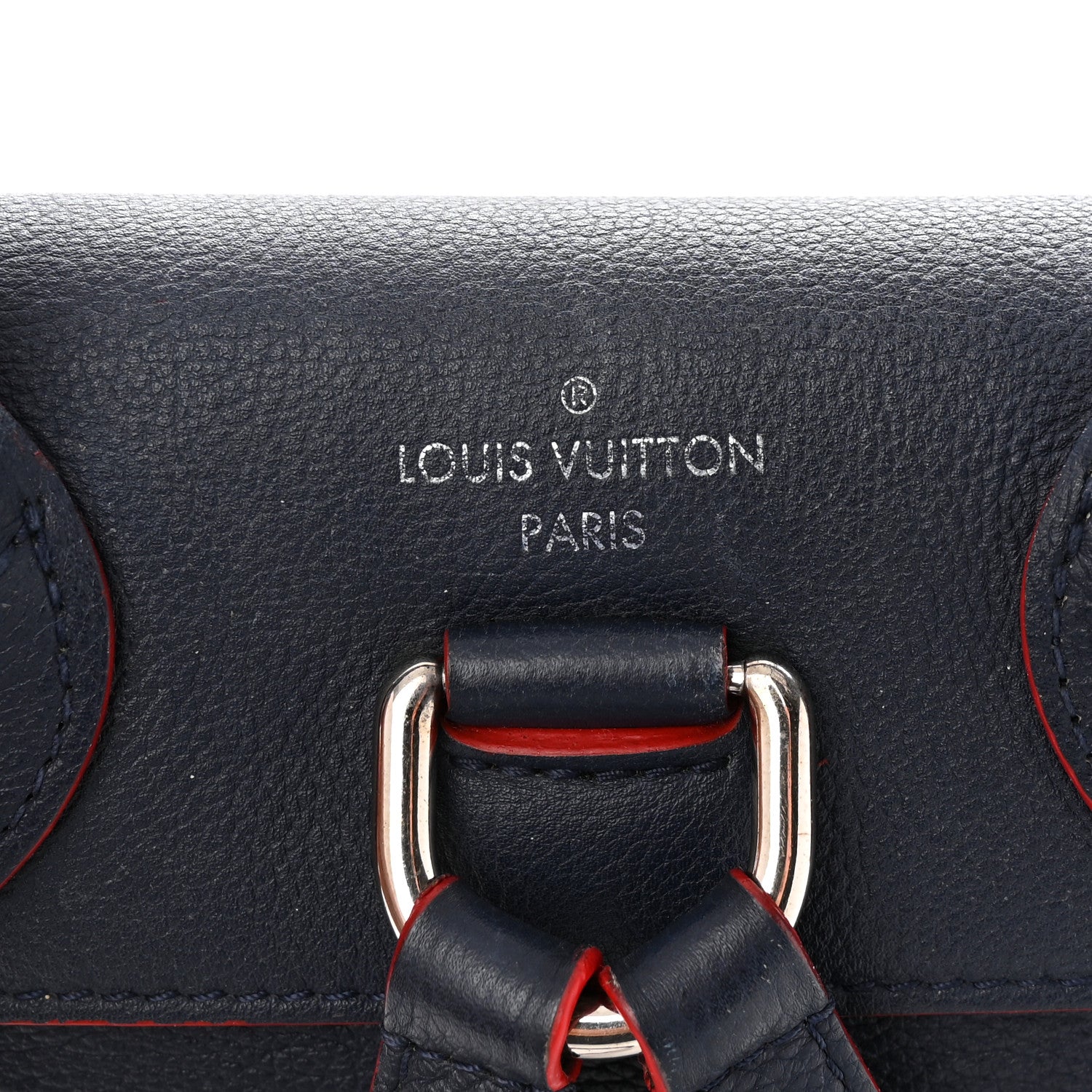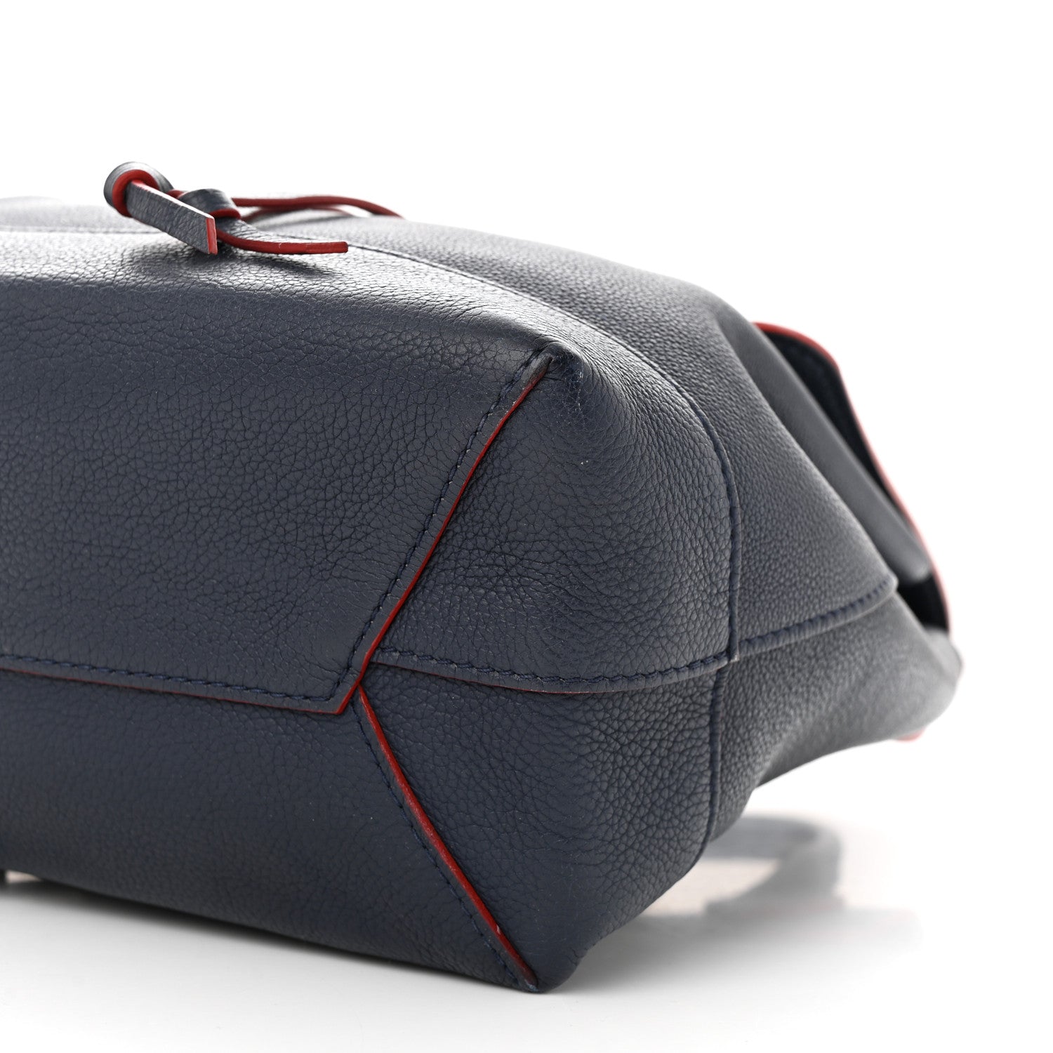 This is an authentic LOUIS VUITTON Soft Calfskin Lockme Backpack in Marine and Rouge. This chic small backpack is crafted of grained calfskin leather in navy with contrasting red resin glazing. The backpack features a calfskin handle, adjustable shoulder straps, top drawstring, and a front flap with a polished silver Louis Vuitton turn lock. This opens to a red microfiber interior with a large hanging pocket.Follow this item for alerts. Louis Vuitton is a registered trademark of Louis Vuitton. FASHIONPHILE is not affiliated with Louis Vuitton.