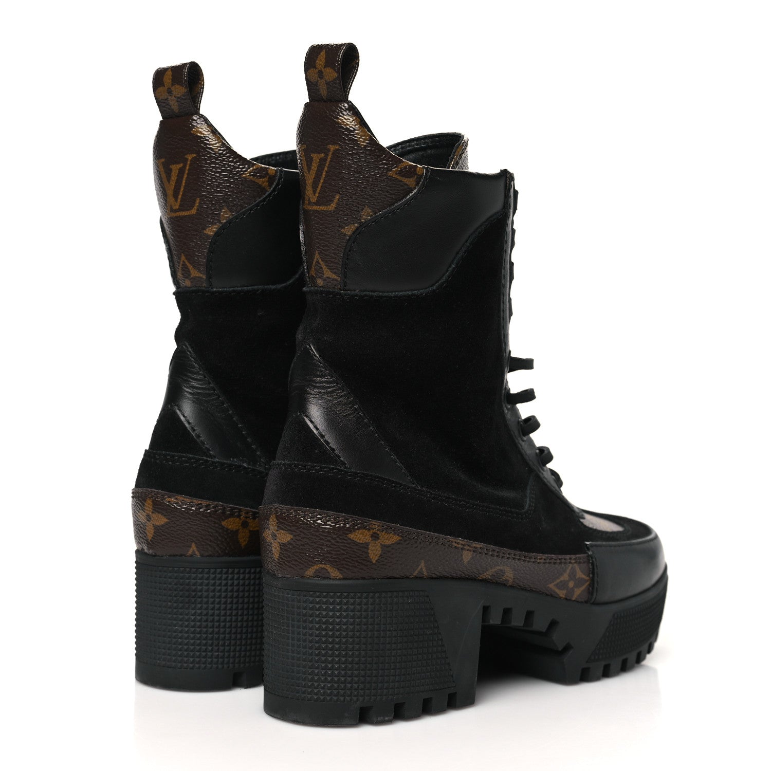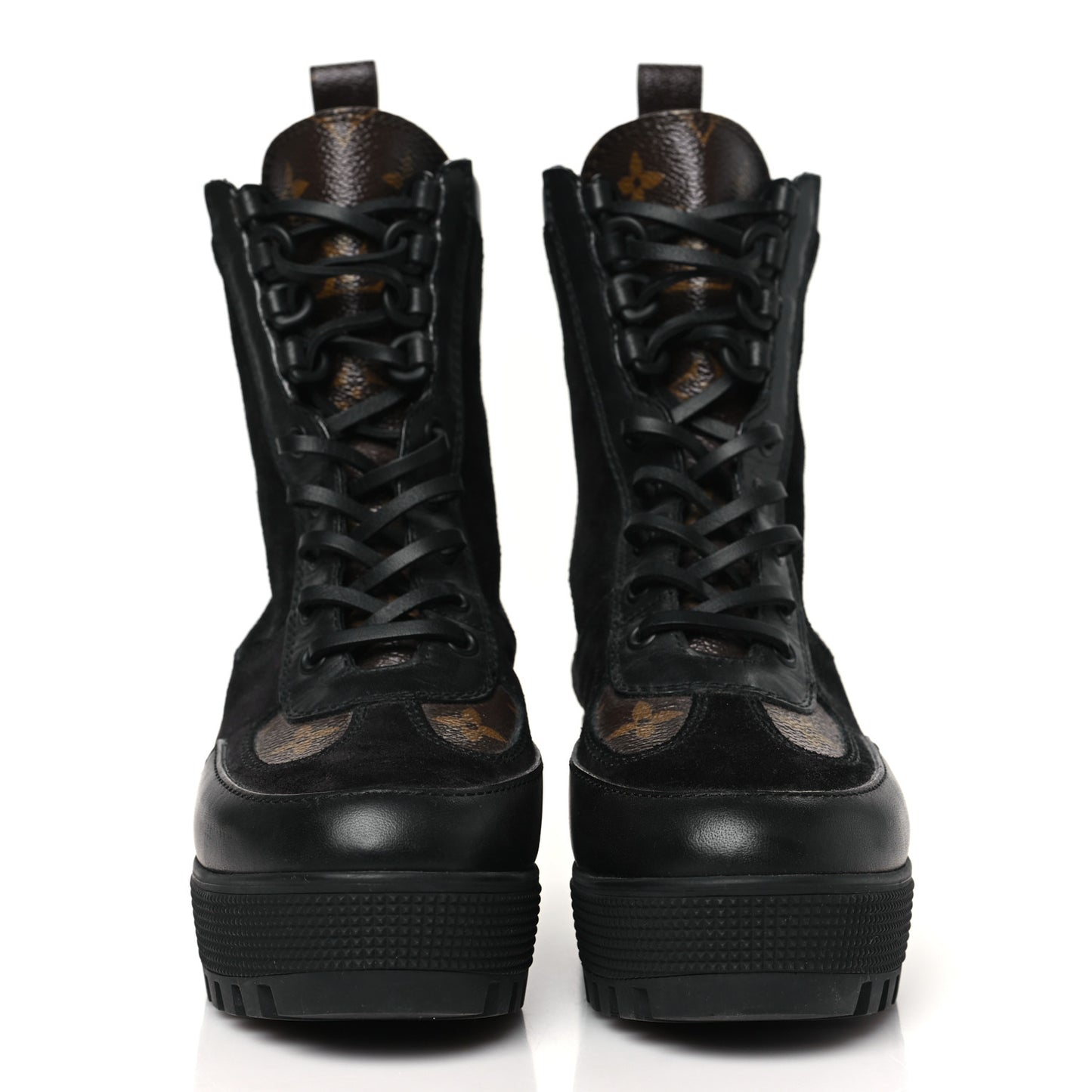 Louis Vuitton/ Accessories/ Shoes /Louis Vuitton Suede Calfskin Monogram Laureate Platform Desert Boots 35 Black