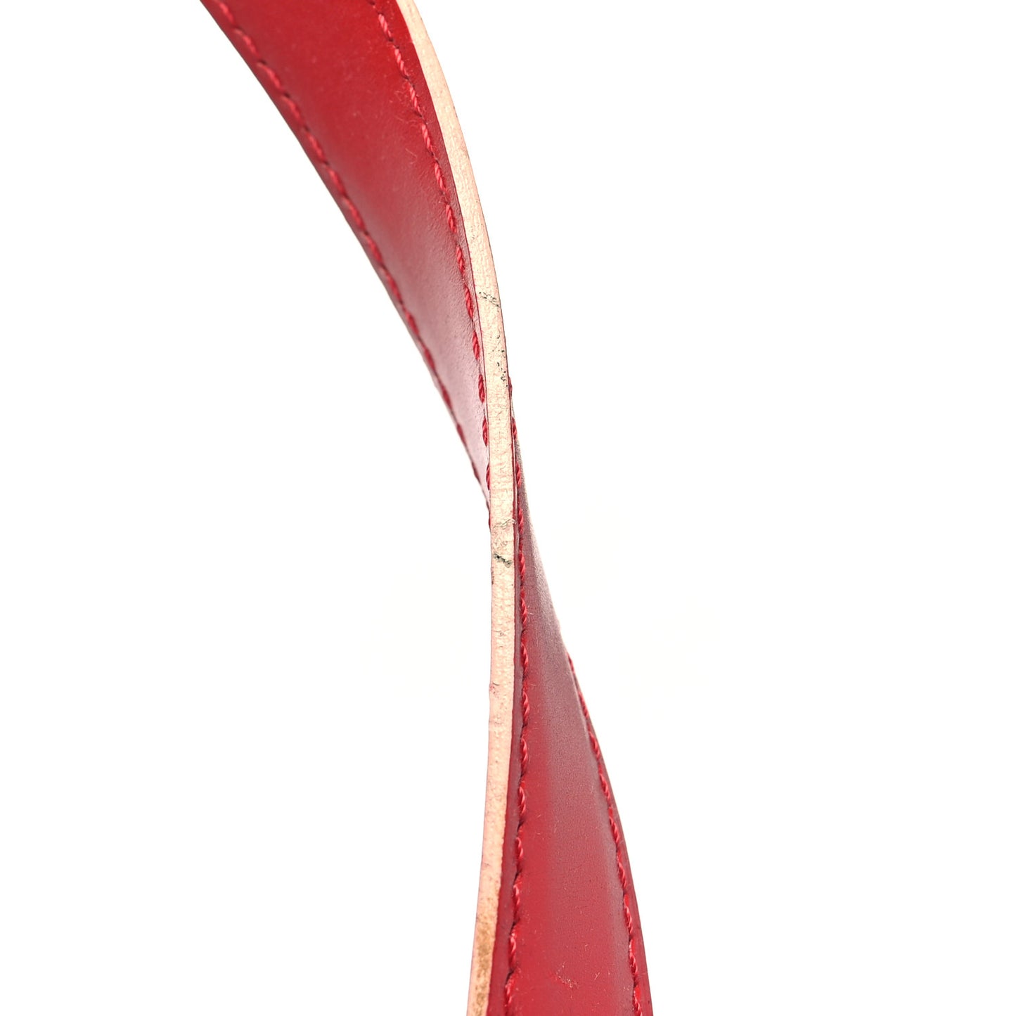This is an authentic LOUIS VUITTON Suhali L Epanoui GM in Geranium. This stylish shoulder bag is crafted of luxurious goatskin leather in red. The bag features leather strap top handles with decorative brass studs and leather trim with a cross over flap. Front belts and brass buckles open to a Louis Vuitton logo fabric interior with patch pockets.Follow this item for alerts. Louis Vuitton is a registered trademark of Louis Vuitton. FASHIONPHILE is not affiliated with Louis Vuitton.