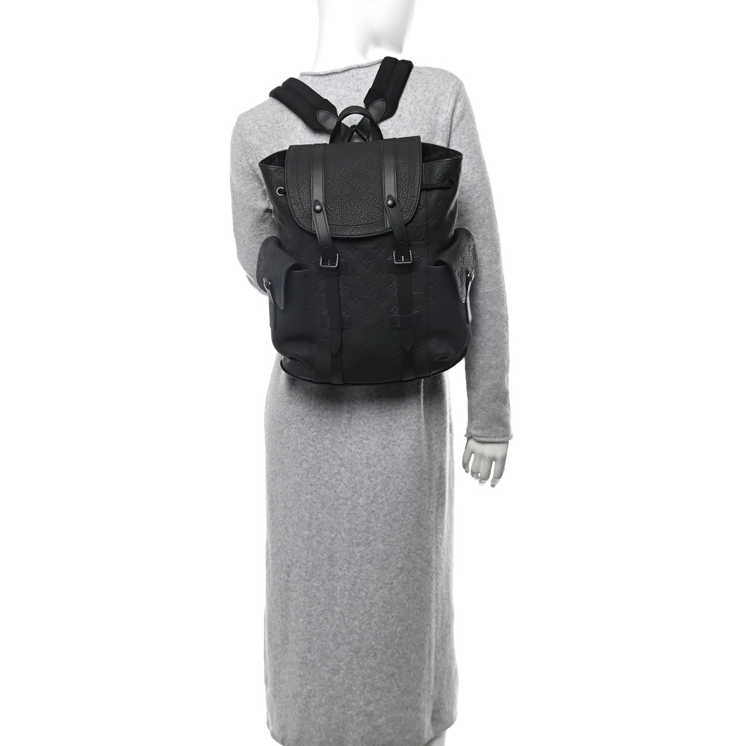 This is an authentic LOUIS VUITTON Taurillon Monogram Christopher Backpack MM in Black. This stylish backpack is finely crafted of Louis Vuitton monogram embossed grained leather with smooth leather trim in black. It features a crossover top with belt closures, a black cinch cord, two external front flap pockets and adjustable shoulder straps. The top flap opens to a spacious black fabric interior with zipper and flat pockets.Follow this item for alerts. Louis Vuitton is a registered trademark of Louis Vuitton. FASHIONPHILE is not affiliated with Louis Vuitton.