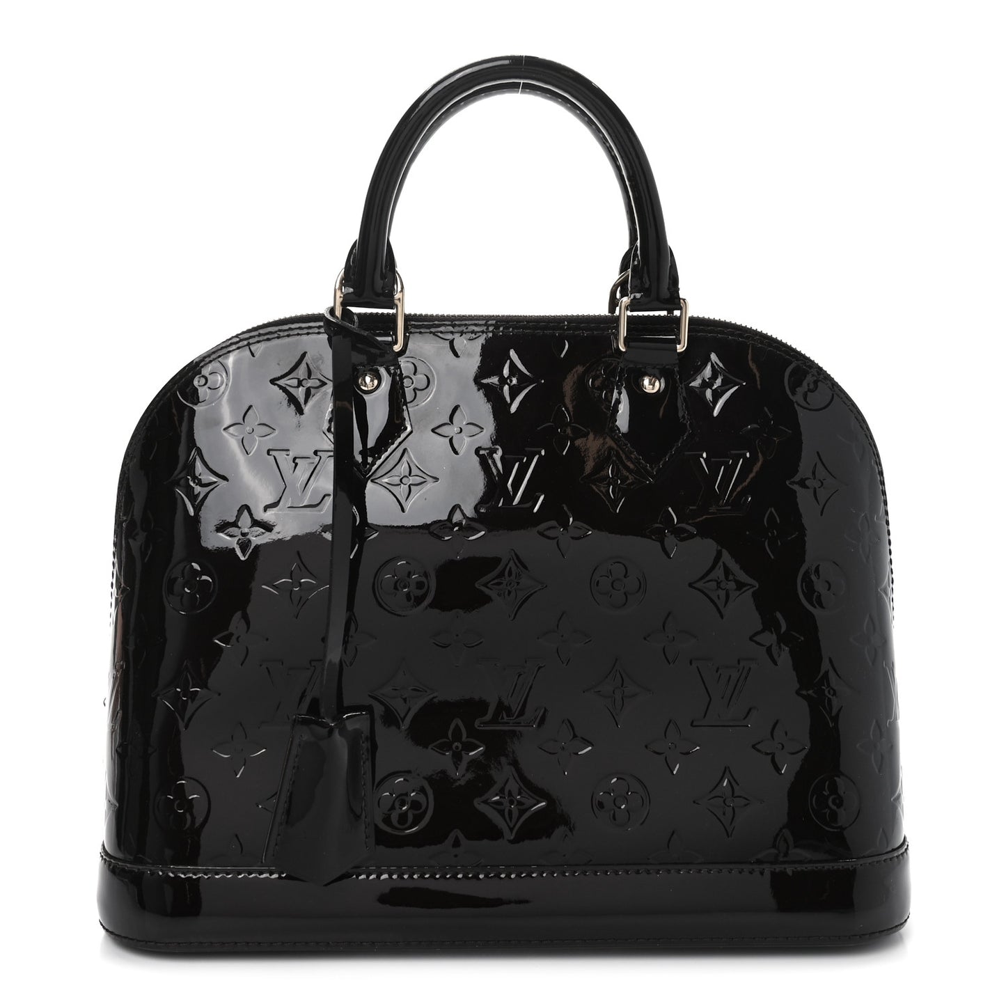 This is an authentic LOUIS VUITTON Vernis Alma PM in Amarante. This tote is crafted of Louis Vuitton monogram-embossed Vernis patent leather in burgundy. The handbag has rolled patent leather top handles and polished brass hardware including a wrap-around zipper and a hanging clochette. The bag opens to a burgundy fabric interior with patch pockets.Follow this item for alerts. Louis Vuitton is a registered trademark of Louis Vuitton. FASHIONPHILE is not affiliated with Louis Vuitton.