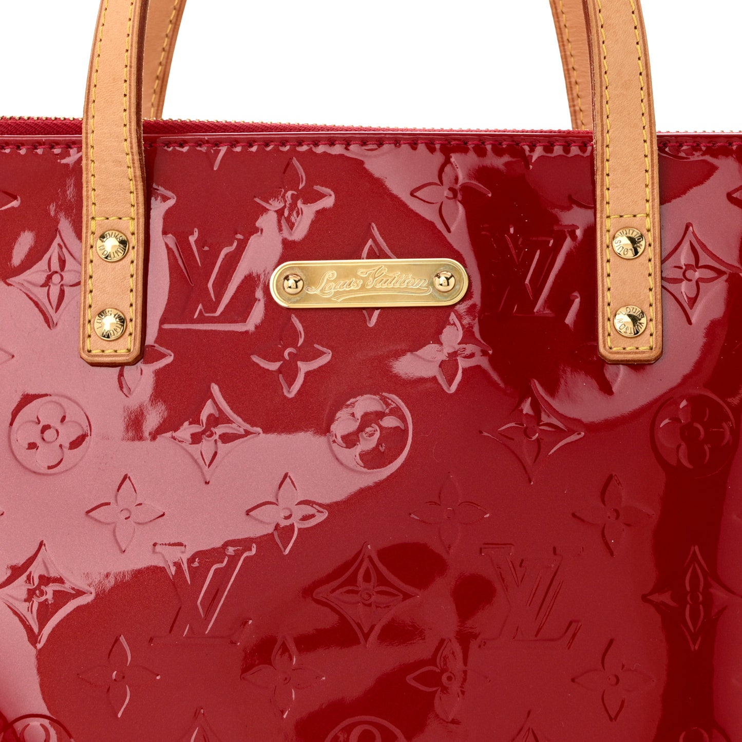 This is an authentic LOUIS VUITTON Vernis Bellevue PM in Pomme D'Amour. This stunning tote from Louis Vuitton that is crafted of shiny Louis Vuitton monogram embossed red patent leather. The bag also features vachetta leather handles and brass hardware. The top zipper opens to a matching red fabric interior with patch pockets.Follow this item for alerts. Louis Vuitton is a registered trademark of Louis Vuitton. FASHIONPHILE is not affiliated with Louis Vuitton.