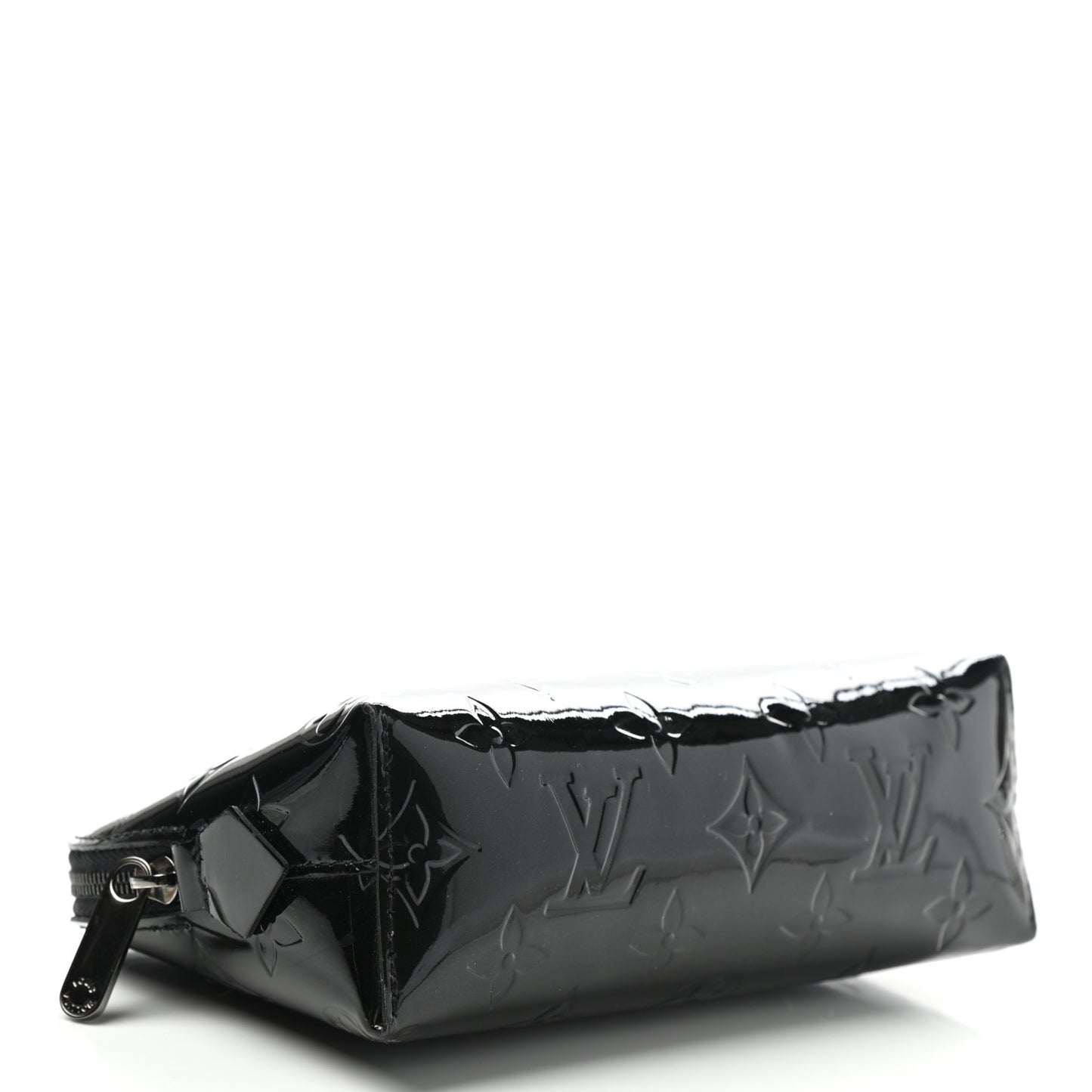 This is an authentic LOUIS VUITTON Vernis Cosmetic Pouch in Noir Magnetique. This stylish pochette is crafted of Louis Vuitton monogram vernis patent leather in black. The bag features a wrap-around dark silver zipper that opens to a grained leather interior.Follow this item for alerts. Louis Vuitton is a registered trademark of Louis Vuitton. FASHIONPHILE is not affiliated with Louis Vuitton.