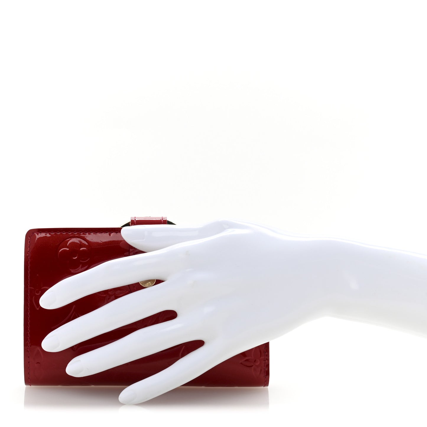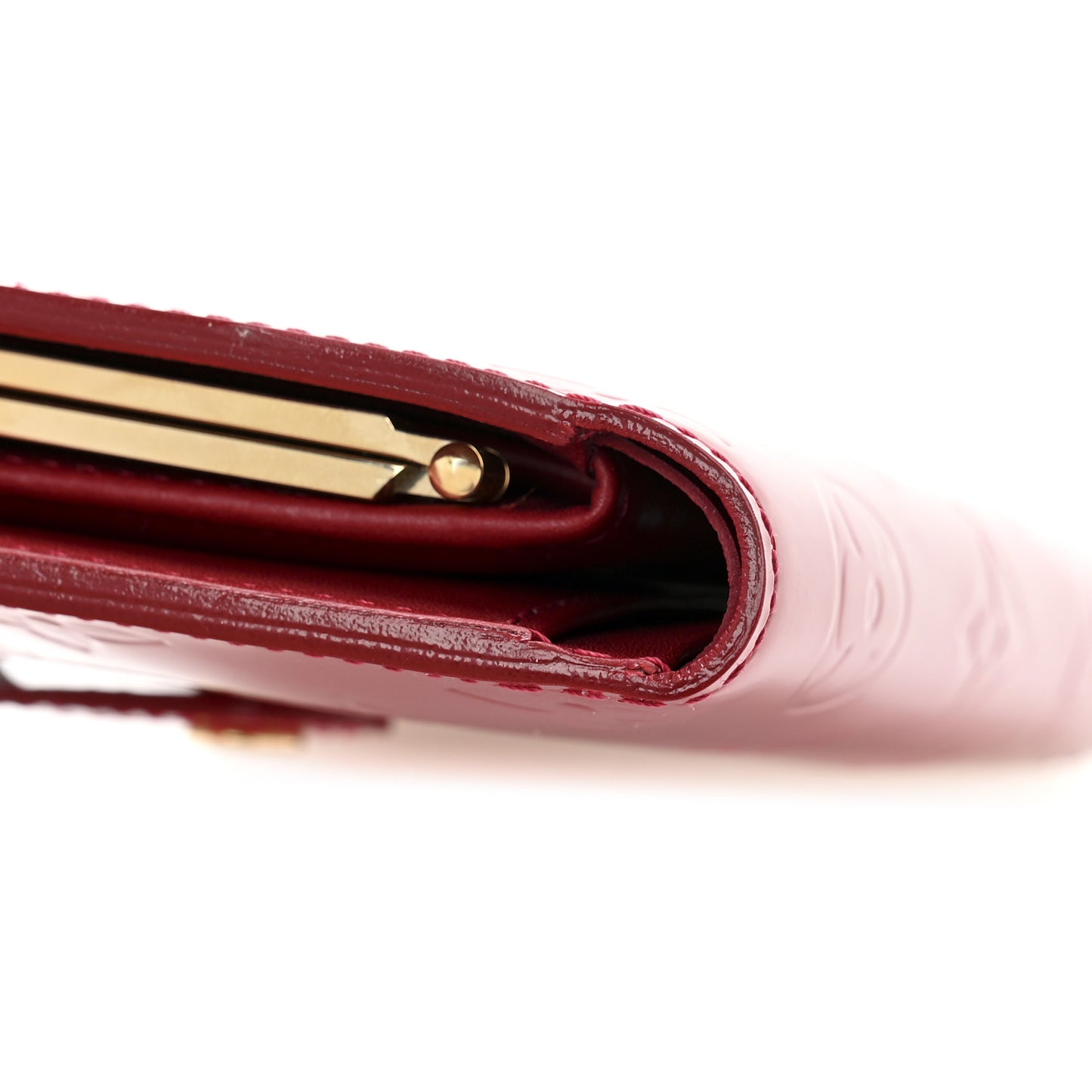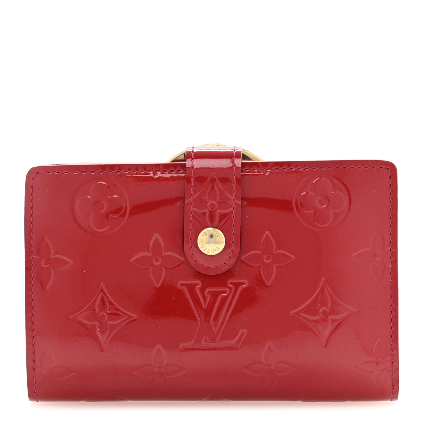 This is an authentic LOUIS VUITTON Vernis French Purse Wallet Pomme d'Amour. This stylish wallet is crafted of Louis Vuitton monogram embossed Vernis patent leather in red. The wallet opens on one side with a crossover strap to a matte red leather interior with card slots, flat pockets, and a billfold. The reverse side opens with a polished brass kiss lock to a coin compartment.Follow this item for alerts. Louis Vuitton is a registered trademark of Louis Vuitton. FASHIONPHILE is not affiliated with Louis Vuitton.