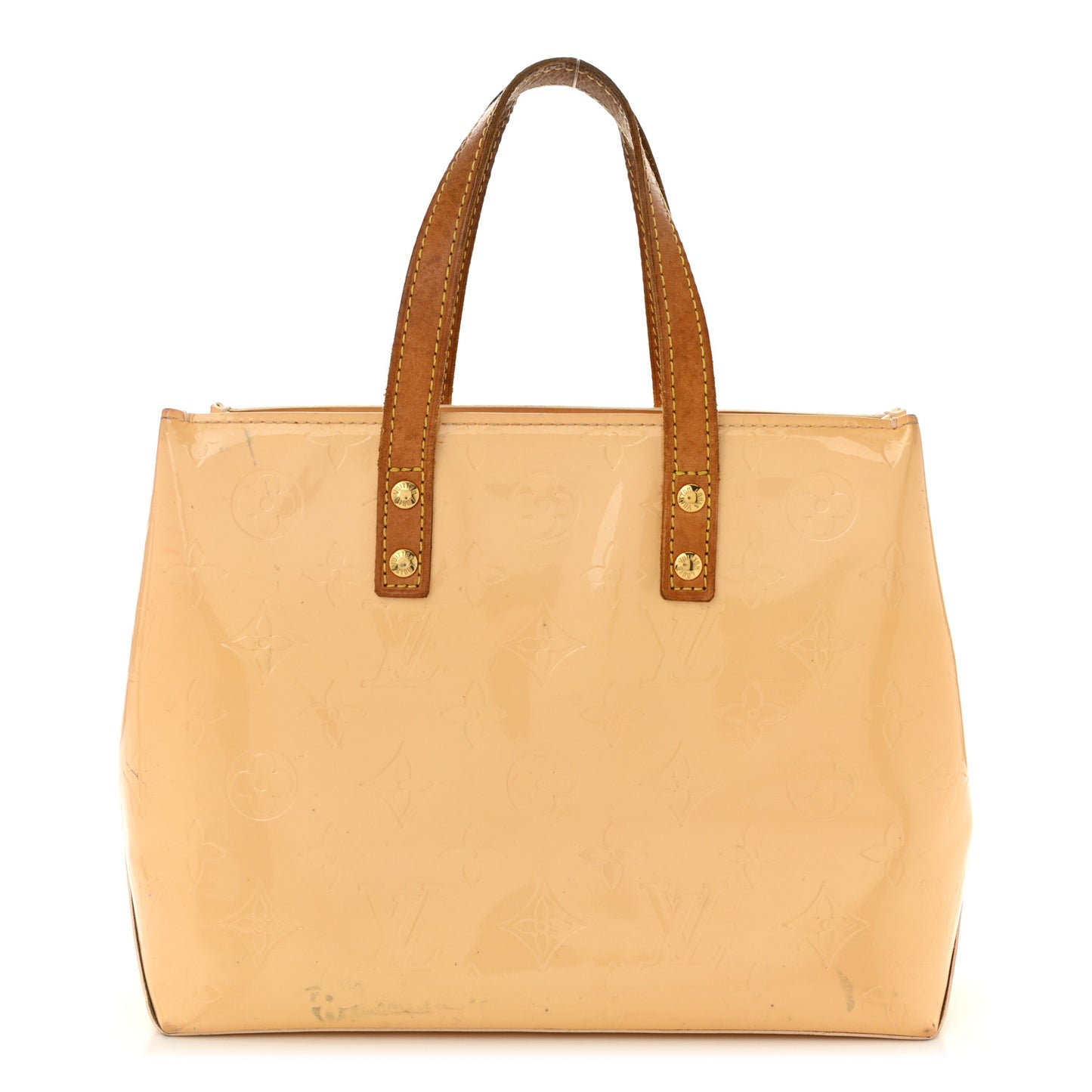 This is an authentic LOUIS VUITTON Vernis Reade PM in Marshmallow. This stylish tote is crafted of Louis Vuitton monogram embossed vernis patent leather. The bag features vachetta cowhide leather top handles with brass hardware and is open to a light pink fabric interior with a zipper pocket.Follow this item for alerts. Louis Vuitton is a registered trademark of Louis Vuitton. FASHIONPHILE is not affiliated with Louis Vuitton.