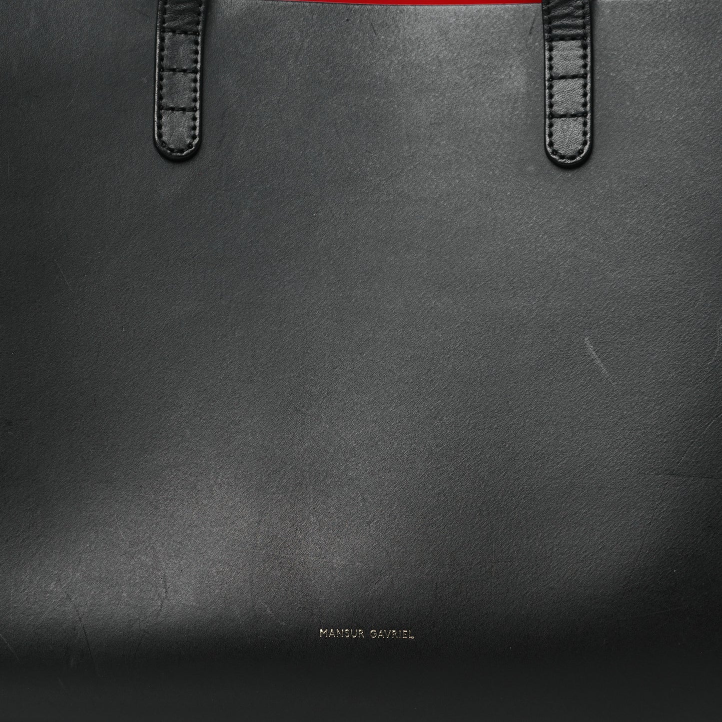 This is an authentic MANSUR GAVRIEL Calfskin Small Shopping Tote in Black and Flamma. This is a chic tote is crafted in vegetable tanned calfskin leather in black. The shoulder bag has tall shoulder straps and opens to a spacious matte red interior with a matching removable pouch.Follow this item for alerts. Mansur Gavriel is a registered trademark of Mansur Gavriel. FASHIONPHILE is not affiliated with Mansur Gavriel.