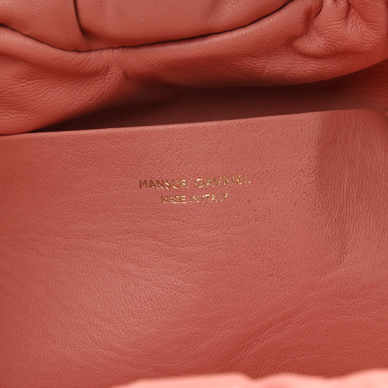 This is an authentic MANSUR GAVRIEL Lambskin Cloud Clutch in Coral. This stylish clutch is crafted of smooth lambskin leather in pink. The bag has a ruched magnetic top frame that opens to a matching leather interior with a patch pocket.Follow this item for alerts. Mansur Gavriel is a registered trademark of Mansur Gavriel. FASHIONPHILE is not affiliated with Mansur Gavriel.