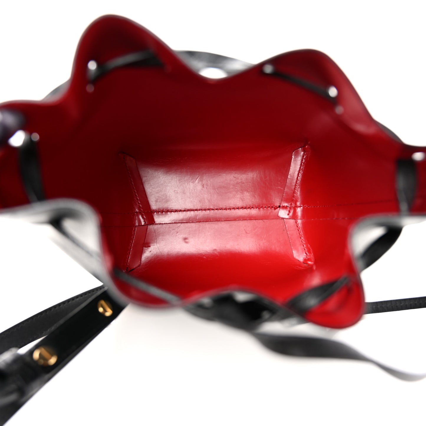 This is an authentic MANSUR GAVRIEL Vegetable Tanned Calfskin Mini Mini Bucket Bag in Black and Flamma. This classic bucket bag is crafted of vegetable-tanned calfskin in black. The bag features a drawstring top, polished gold hardware, a removable pouch, and an adjustable leather strap. The top is open to a red leather interior.Follow this item for alerts. Mansur Gavriel is a registered trademark of Mansur Gavriel. FASHIONPHILE is not affiliated with Mansur Gavriel.