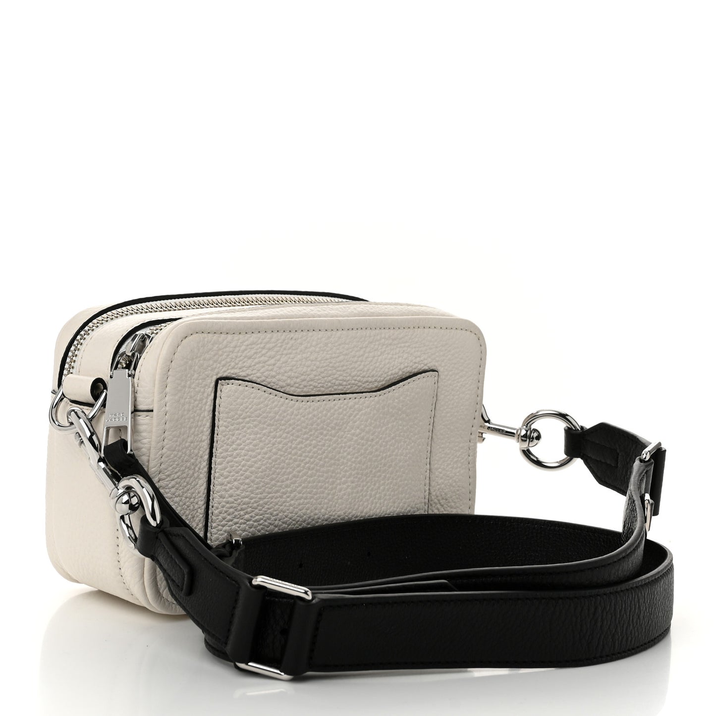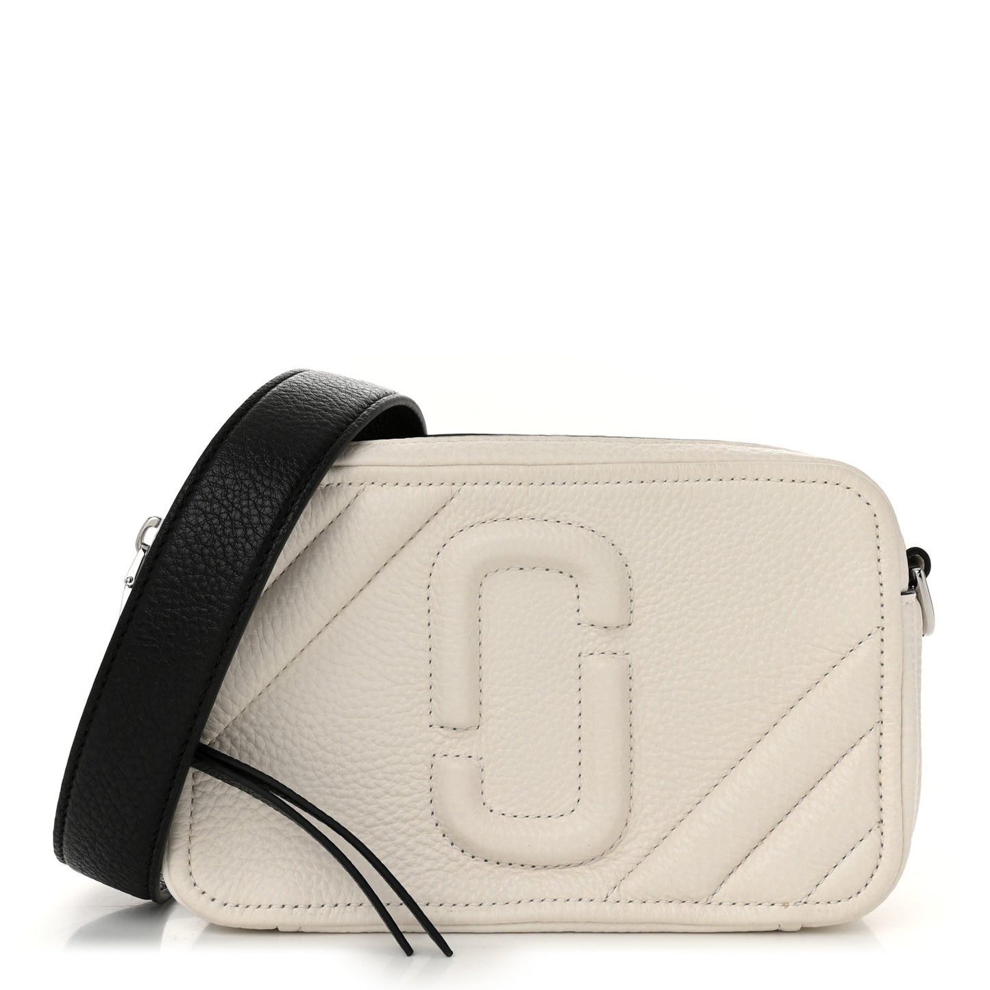 This is an authentic MARC JACOBS Calfskin Quilted The Moto Shot 21 Bag in White. This stylish camera bag is crafted of white leather. It features an optional black leather shoulder strap and silver hardware. The two zipper compartments open to a grey fabric interior and card slots.Follow this item for alerts. Marc Jacobs is a registered trademark of Marc Jacobs. FASHIONPHILE is not affiliated with Marc Jacobs.