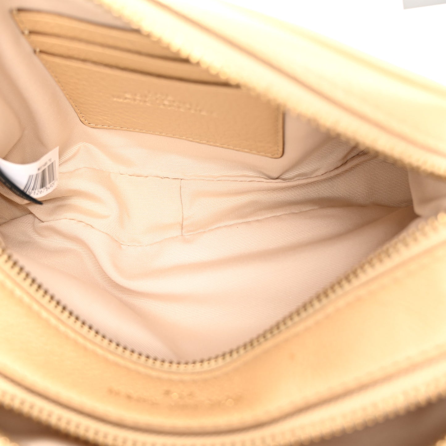 This is an authentic MARC JACOBS Pearlized Supple Natural Grain Calfskin The Softshot 21 Bag in Gold. This professionally styled camera bag is beautifully crafted of gold textured calfskin leather. The bag features an adjustable leather shoulder strap with gold hardware. The two top zippers open to a beige fabric interior with card slots.Follow this item for alerts. Marc Jacobs is a registered trademark of Marc Jacobs. FASHIONPHILE is not affiliated with Marc Jacobs.