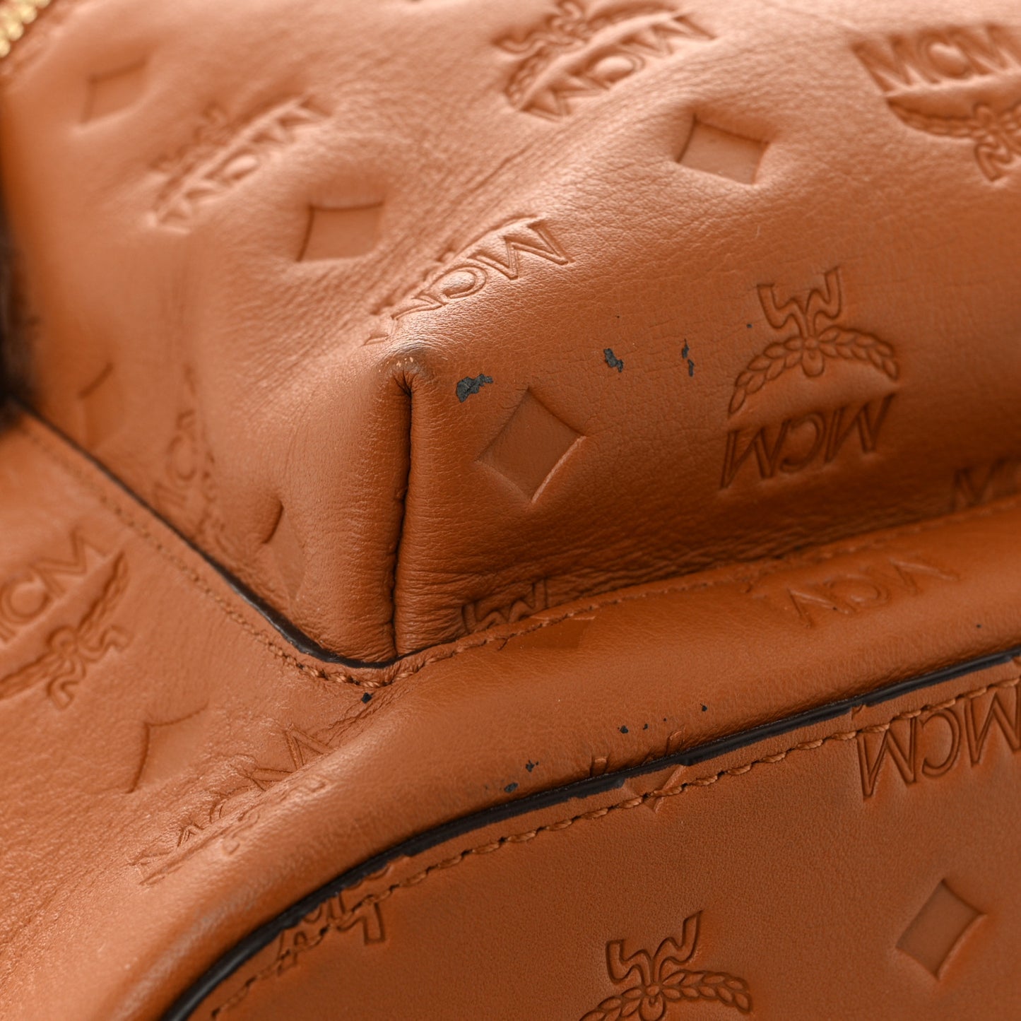 This is an authentic MCM Calfskin Ottomar Stark Backpack in Cognac. This backpack is crafted of embossed monogram calfskin leather in brown. The backpack also features a front zipper pocket, a strong rolled top handle, gold hardware, and adjustable shoulder straps. The two-way zip-around top opens to a brown suede interior with a large compartment.Follow this item for alerts. MCM is a registered trademark of MCM. FASHIONPHILE is not affiliated with MCM.