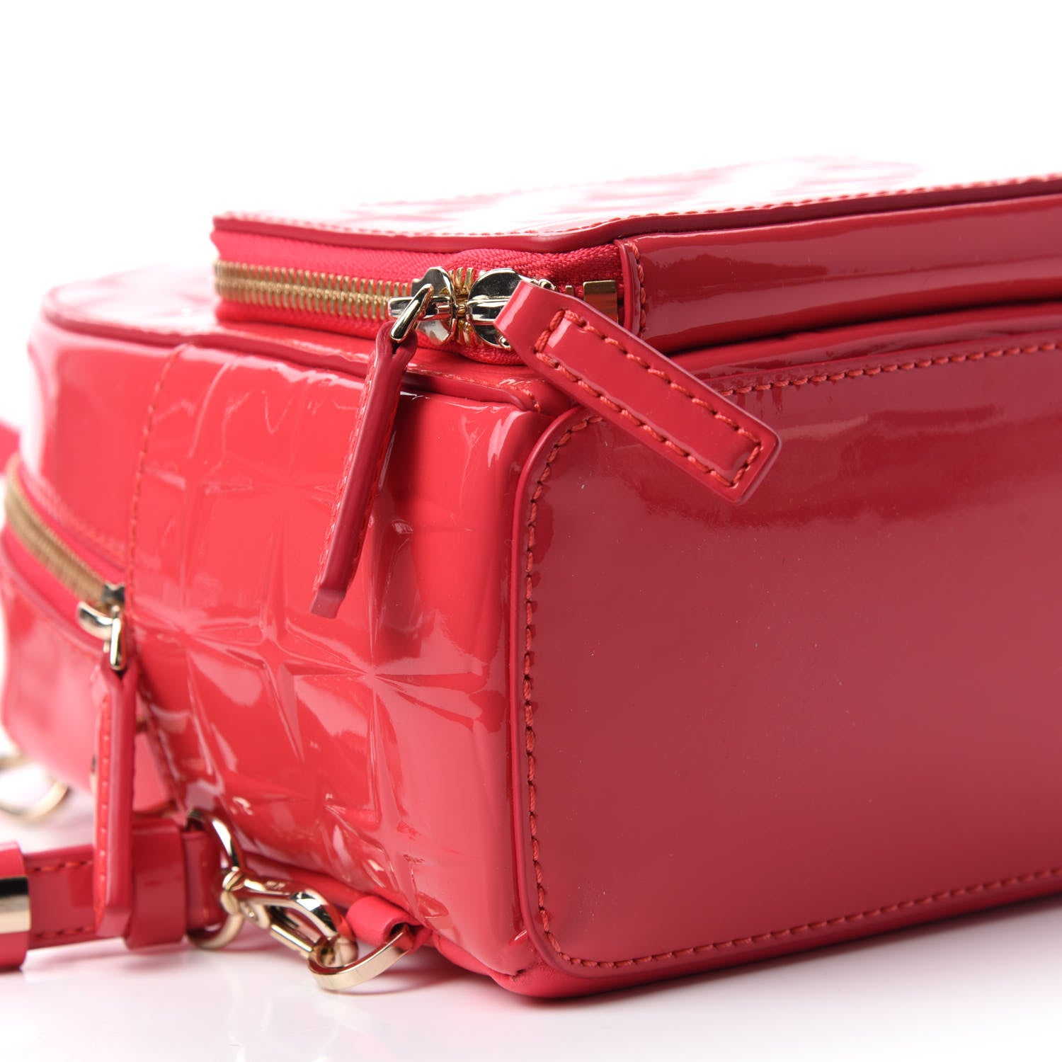 This is an authentic MCM Diamond Patent Stark Bebe Boo Backpack in Teaberry. This petite backpack is crafted of patent leather in pink with an embossed diamond pattern. The backpack features small pockets at the sides, a front zipper pocket, and adjustable shoulder straps with gold hardware. The zipper top opens to a beige fabric interior with card slots.Follow this item for alerts. MCM is a registered trademark of MCM. FASHIONPHILE is not affiliated with MCM.