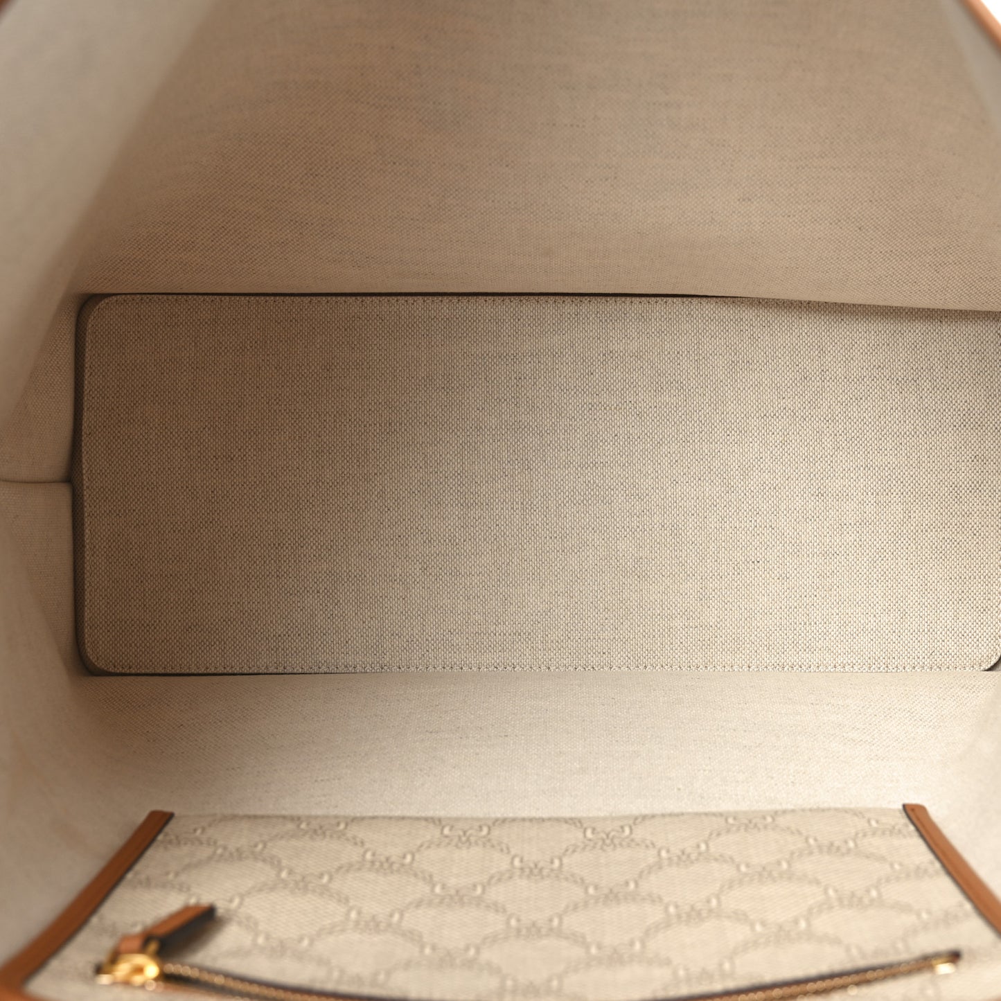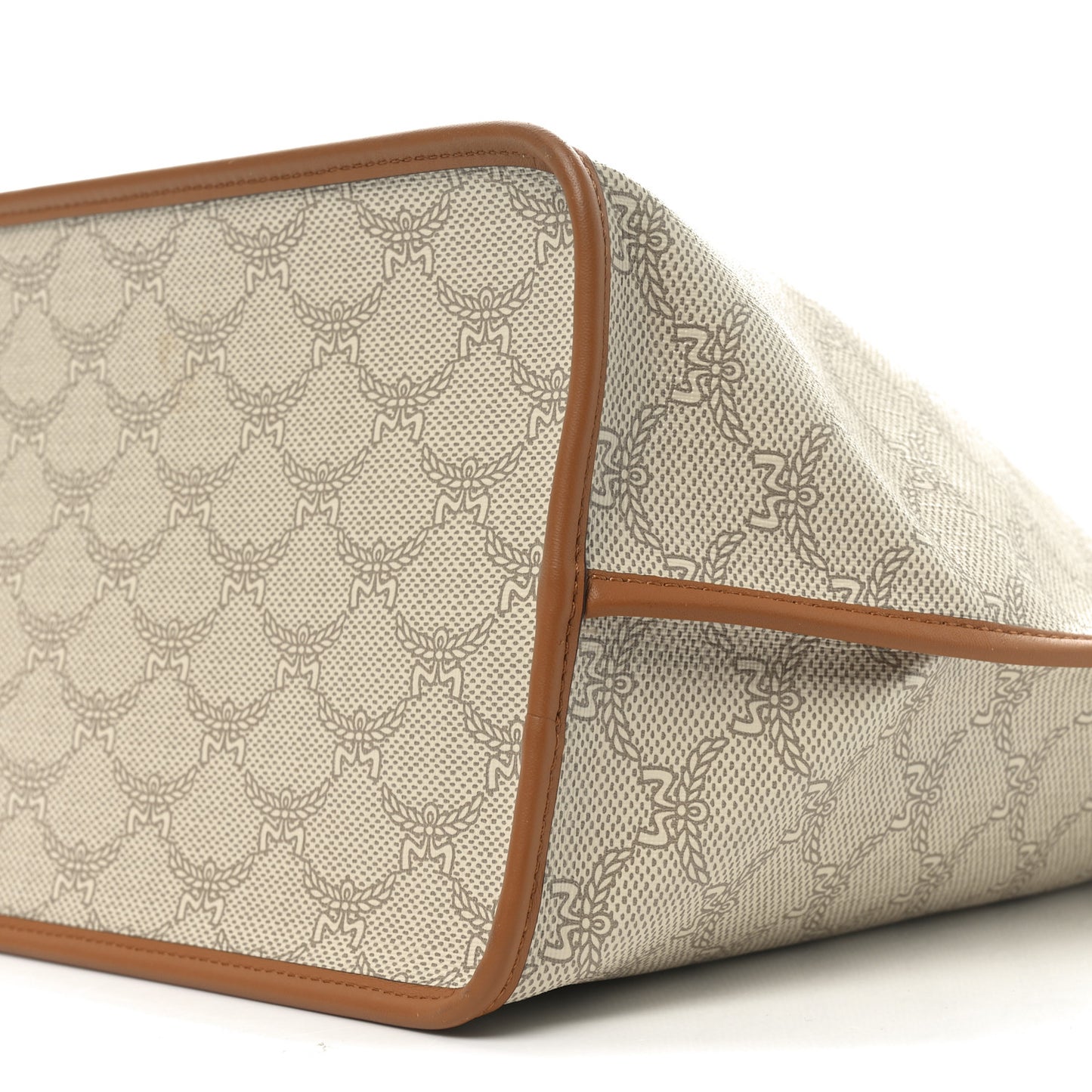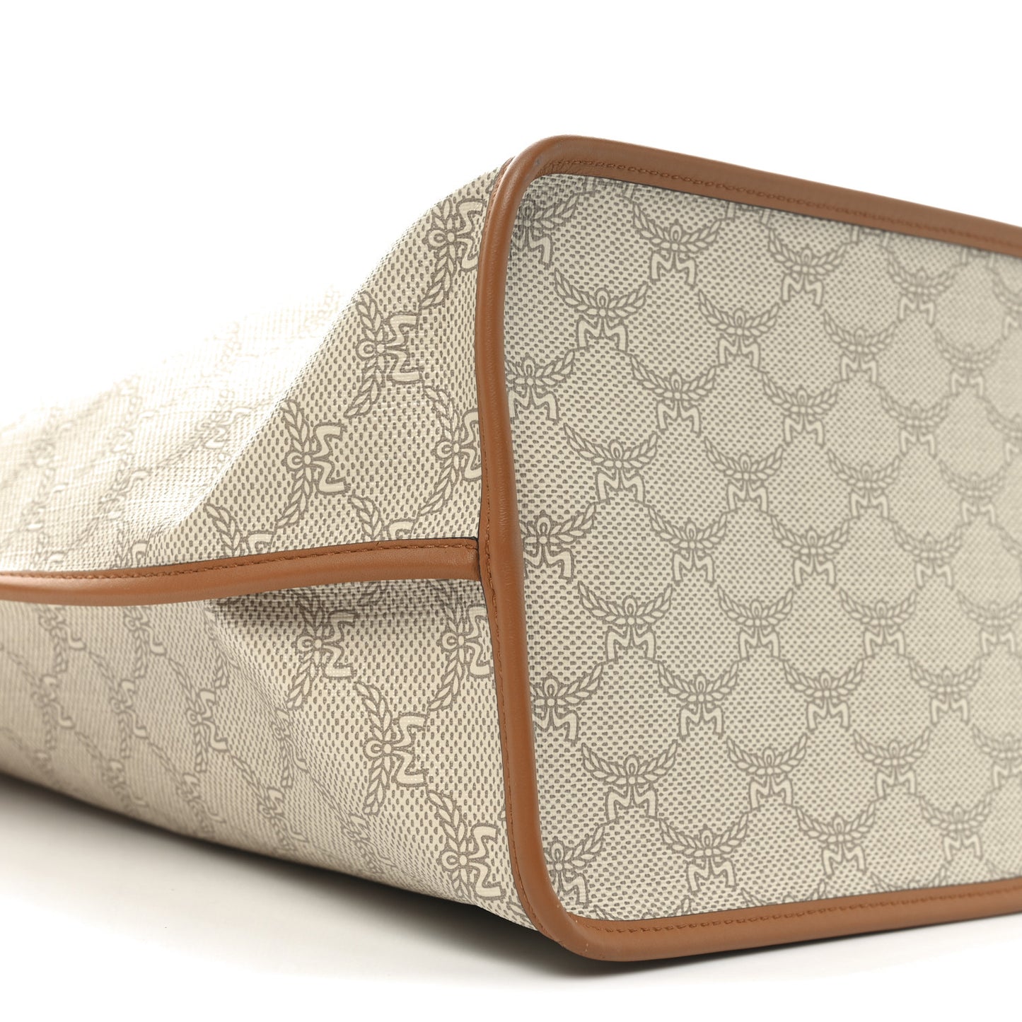 This is an authentic MCM Lauretos Nappa Medium Himmel Shopper Tote in Oatmeal. This chic tote is finely crafted of lauretos coated canvas with the laurel leaves MCM monogram in beige. The bag features tan leather shoulder straps, tan leather trim, and gold hardware. The top opens to a spacious beige fabric interior with a hanging zipper pocket.Follow this item for alerts. MCM is a registered trademark of MCM. FASHIONPHILE is not affiliated with MCM.