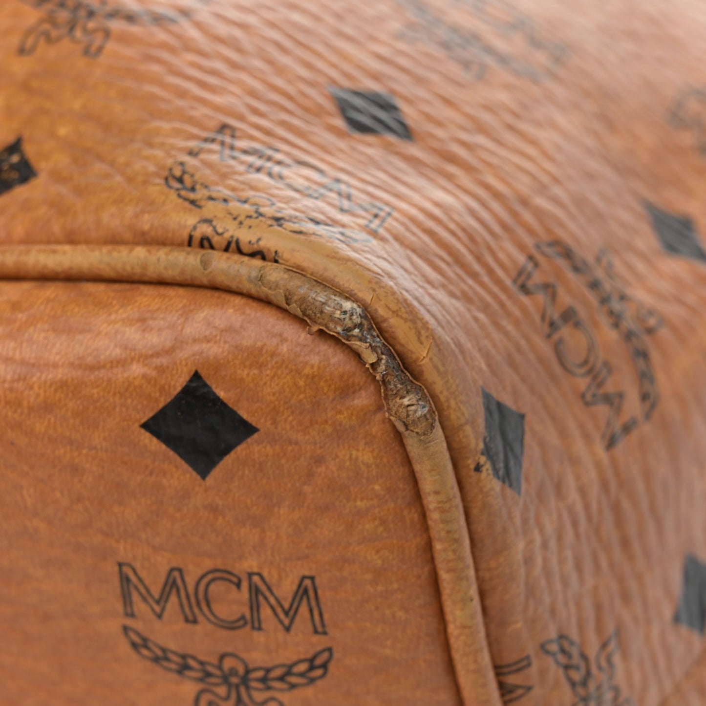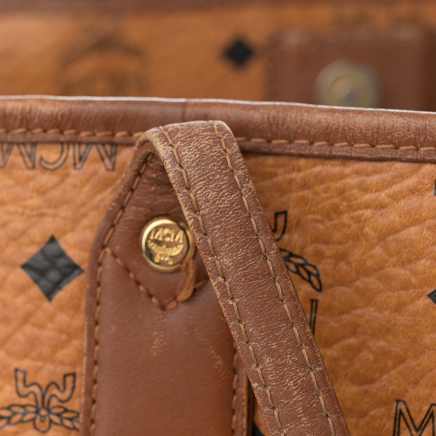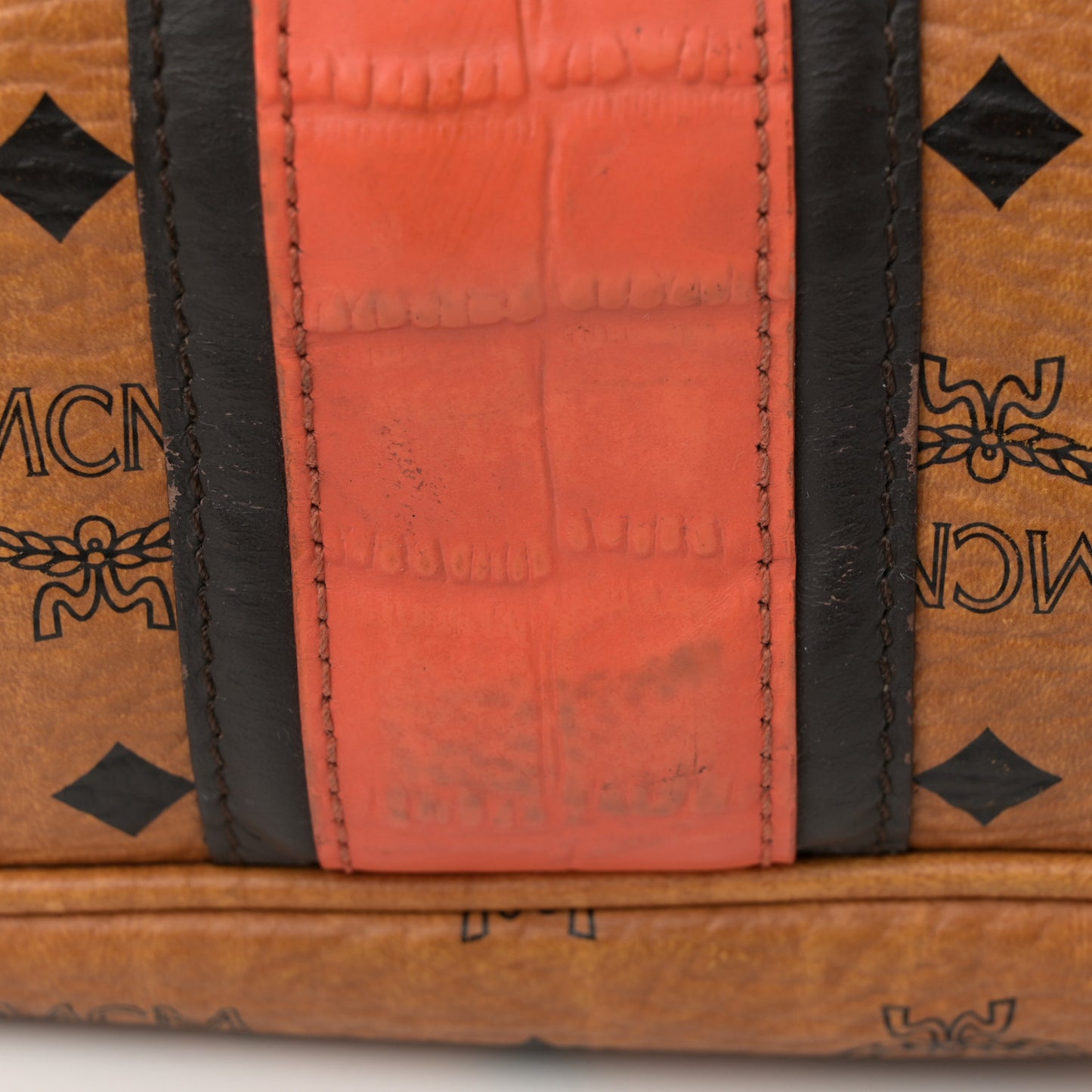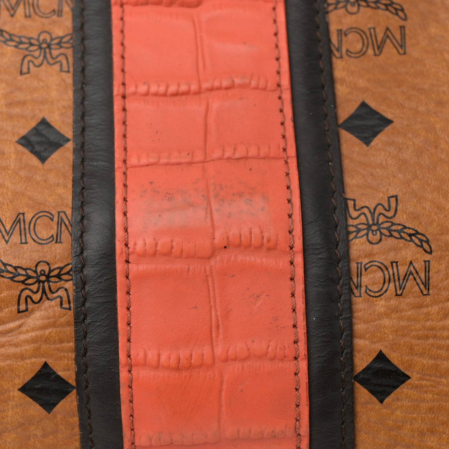 This is an authentic MCM Visetos Crocodile Embossed Medium Liz Shopper Tote in Cognac. This sophisticated tote is crafted of visetos coated canvas in light brown and with the classic black MCM monogram print. The shoulder bag features a vertical strip in orange crocodile embossed leather with dark brown leather accent, tall leather shoulder straps, and an open top to a natural interior with two hanging pockets, and polished gold hardware.Follow this item for alerts. MCM is a registered trademark of MCM. FASHIONPHILE is not affiliated with MCM.