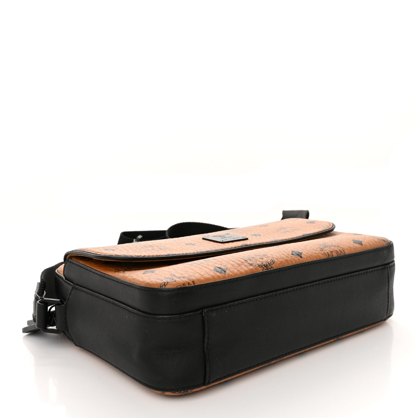 This is an authentic MCM Visetos Monogram Medium Aren Crossbody in Cognac. This sophisticated crossbody bag is finely crafted of brown coated canvas with black MCM monogram. This bag features black leather trim, a long black nylon strap and matte black hardware with a front and back pocket. The top zipper opens to a brown fabric interior with a zipper pocket.Follow this item for alerts. MCM is a registered trademark of MCM. FASHIONPHILE is not affiliated with MCM.