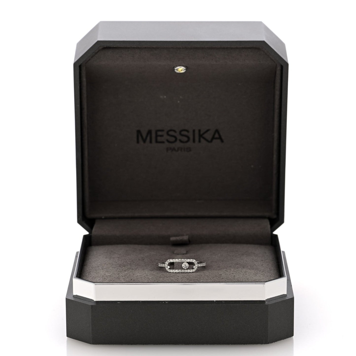 This is an authentic MESSIKA 18K White Gold Diamond Large Move Uno Pave Ring 53 6.5. The ring is crafted of 18 karat white gold and features round brilliant cut diamonds, approximately .31 total carat weight, including a moving diamond in the center.Follow this item for alerts. Messika is a registered trademark of Messika. FASHIONPHILE is not affiliated with Messika.