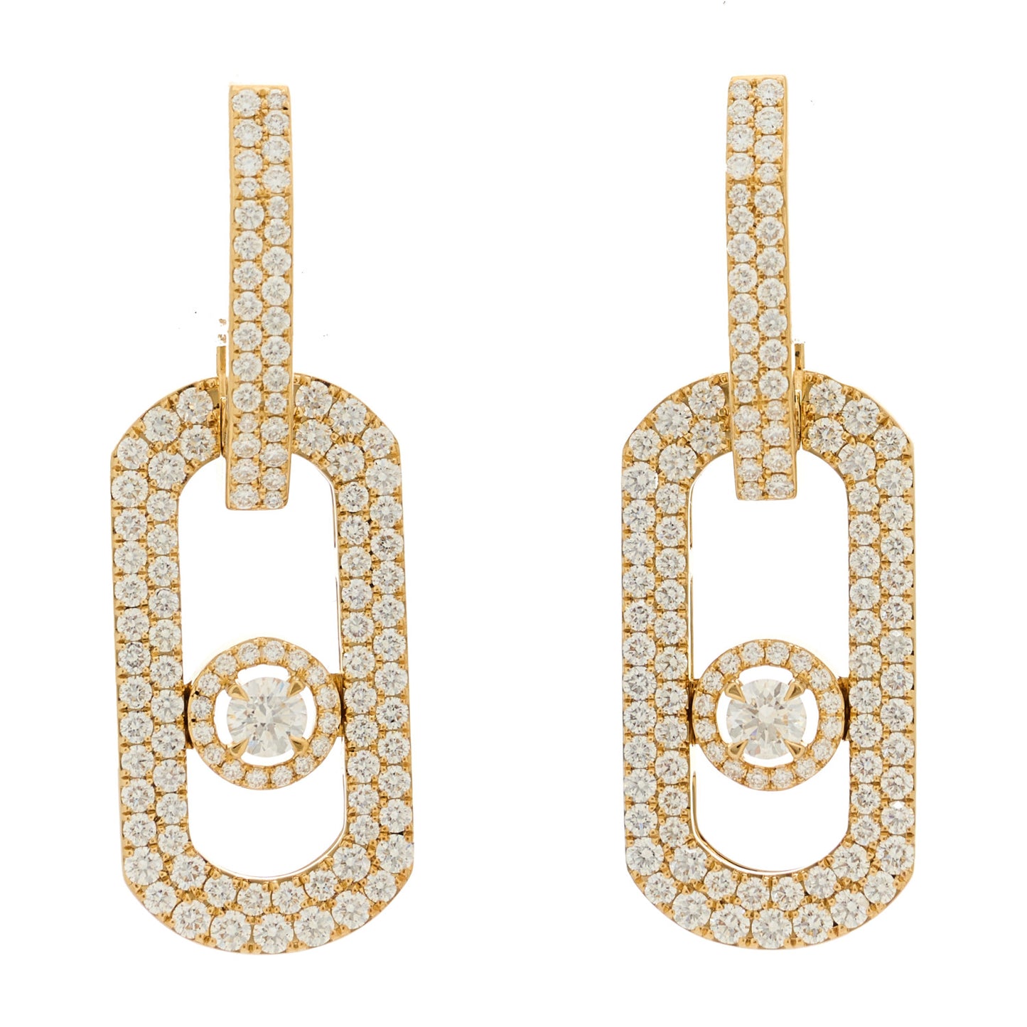 This is an authentic MESSIKA 18K Yellow Gold Diamond XL So Move Pave Pendant Earrings. The earrings are crafted of 18 karat yellow gold and feature large link motifs with a moving component, pave-set with approximately 2.12 total carat weight of diamonds.Follow this item for alerts. Messika is a registered trademark of Messika. FASHIONPHILE is not affiliated with Messika.