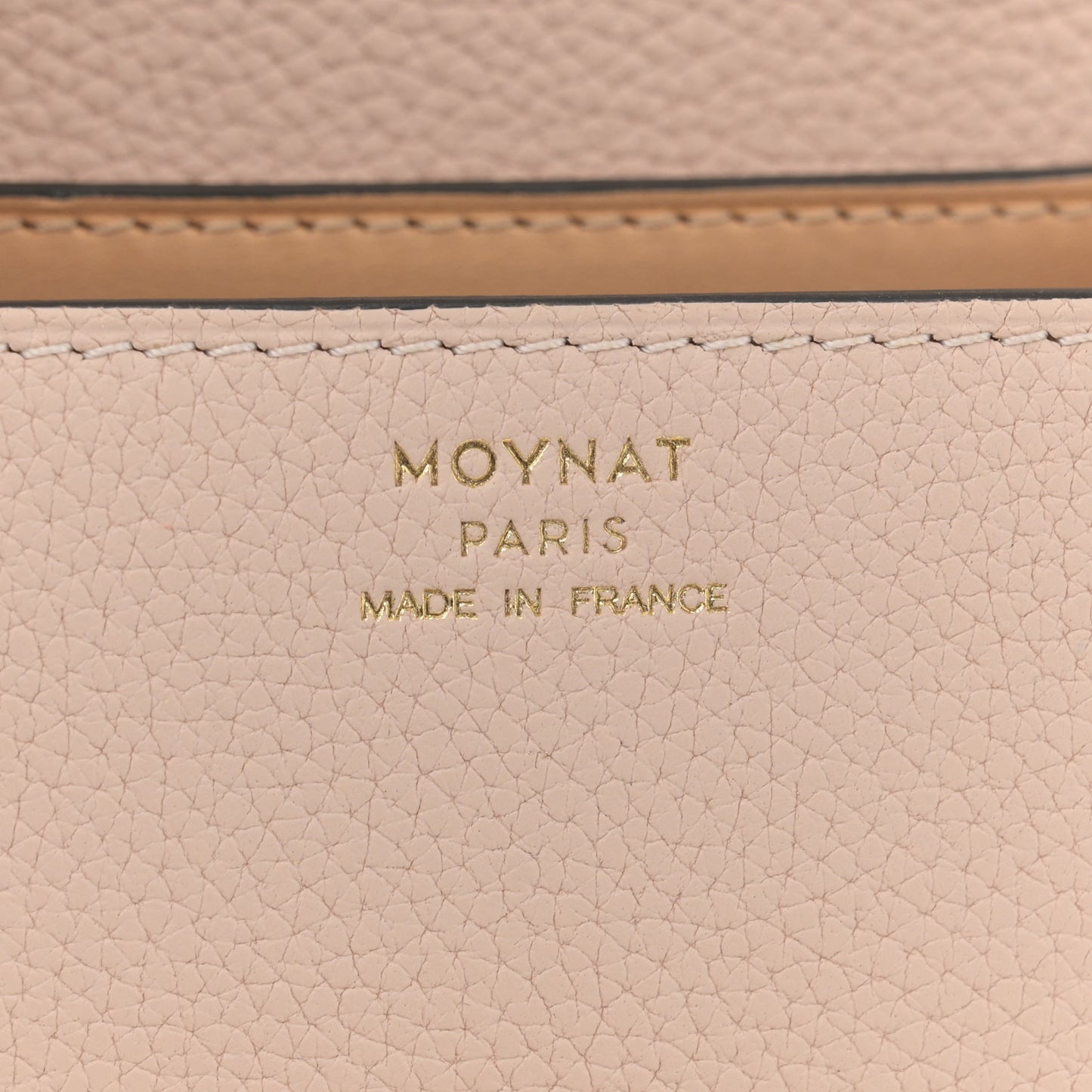 This is an authentic MOYNAT Taurillon Blush Rejane Nano in Powder. This chic bag is finely crafted of beige grained calfskin leather which maintains a structured silhouette. The bag features a leather top handle, an optional shoulder strap, and gold hardware. The overlay flap has a push-lock closure that opens to a tan leather interior with a patch pocket.Follow this item for alerts. Moynat is a registered trademark of Moynat. FASHIONPHILE is not affiliated with Moynat.