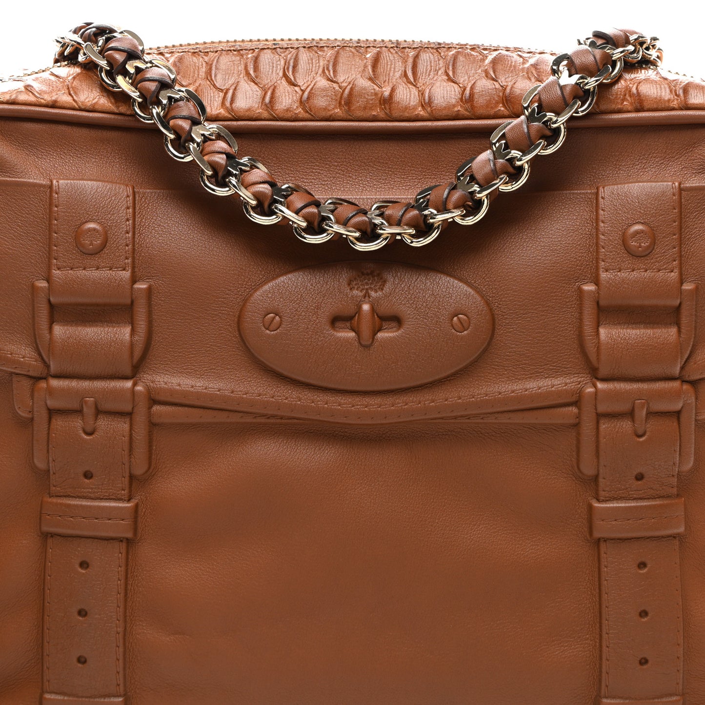 This is an authentic MULBERRY Calfskin Silky Snake Print Maisie Bag in Oak. This chic satchel is crafted of calfskin leather in brown. The bag opens to a matching brown fabric interior.Follow this item for alerts. Mulberry is a registered trademark of Mulberry. FASHIONPHILE is not affiliated with Mulberry.