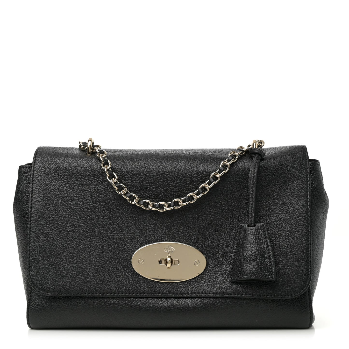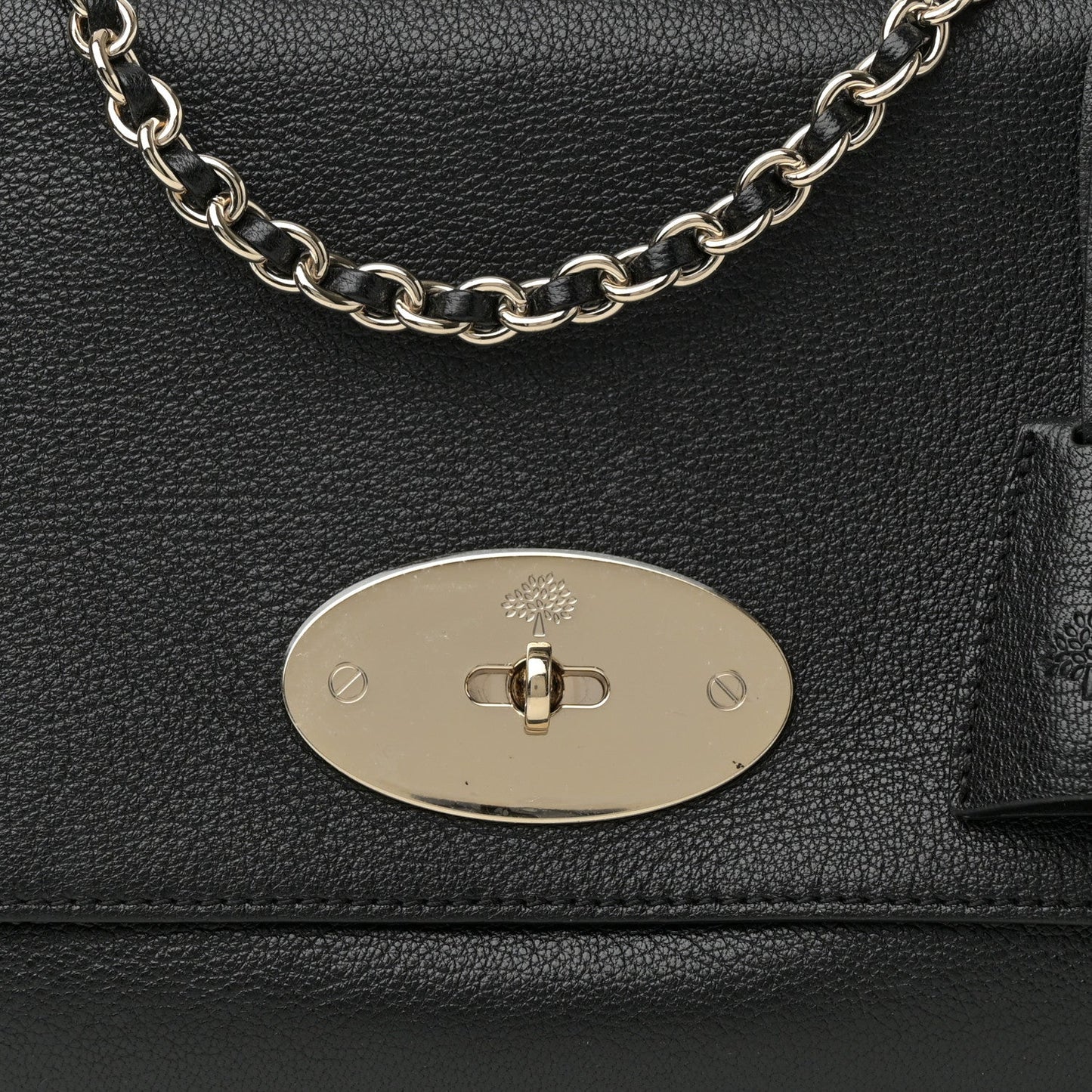 This is an authentic MULBERRY Glossy Goatskin Medium Lily in Black. This super chic shoulder bag is crafted of grained goatskin leather in black. The bag features a leather-threaded polished gold chain link shoulder strap, and a matching gold turn lock on the crossover flap. This opens the bag to a black suede interior with a zipper pocket.Follow this item for alerts. Mulberry is a registered trademark of Mulberry. FASHIONPHILE is not affiliated with Mulberry.