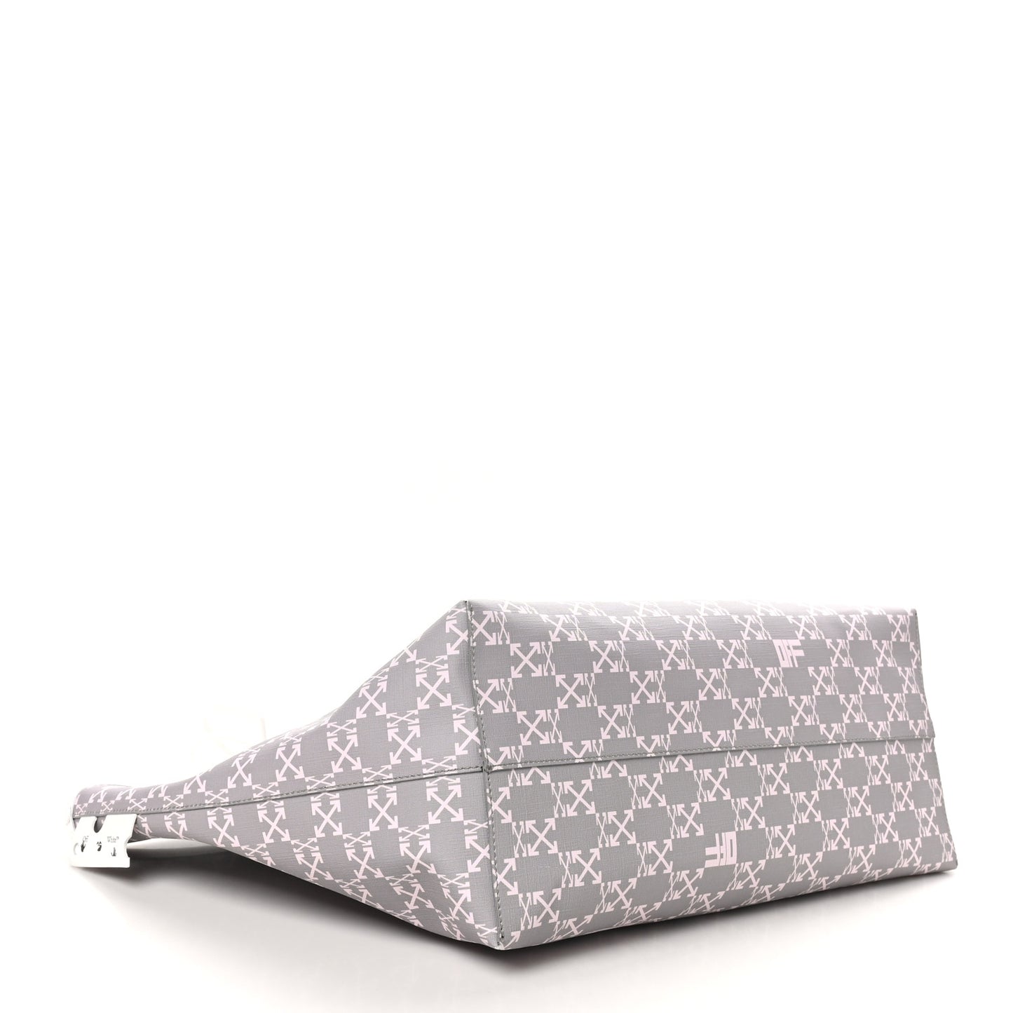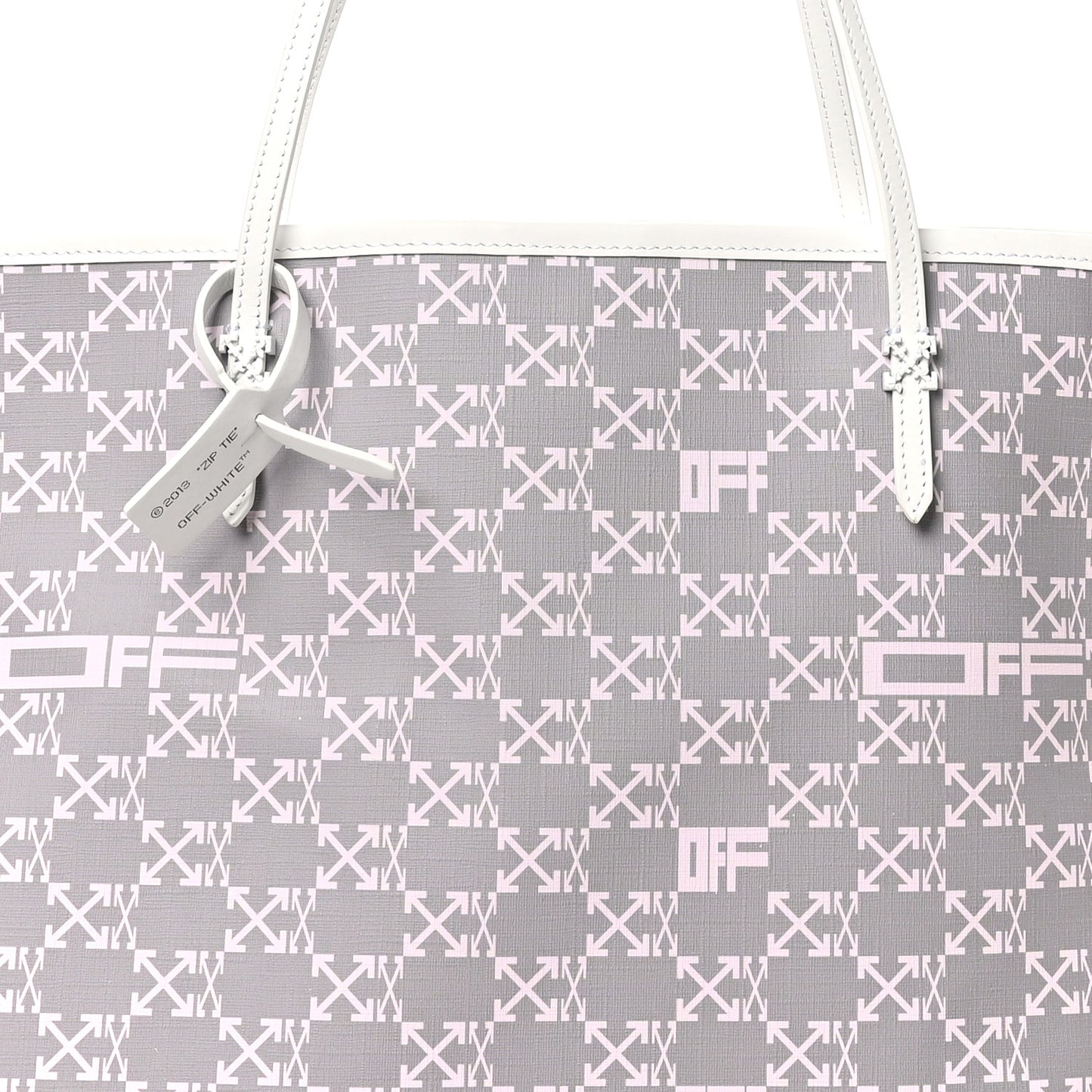 This is an authentic OFF-WHITE Coated Canvas Arrow Print Day Off Tote Bag in White. This chic tote bag is crafted of coated canvas in grey with a pink arrow print overlay. This bag features white leather strap handles, white leather trim, and white hardware. The top opens to a black fabric interior with white removable pouch.Follow this item for alerts. Off-White is a registered trademark of Off-White. FASHIONPHILE is not affiliated with Off-White.