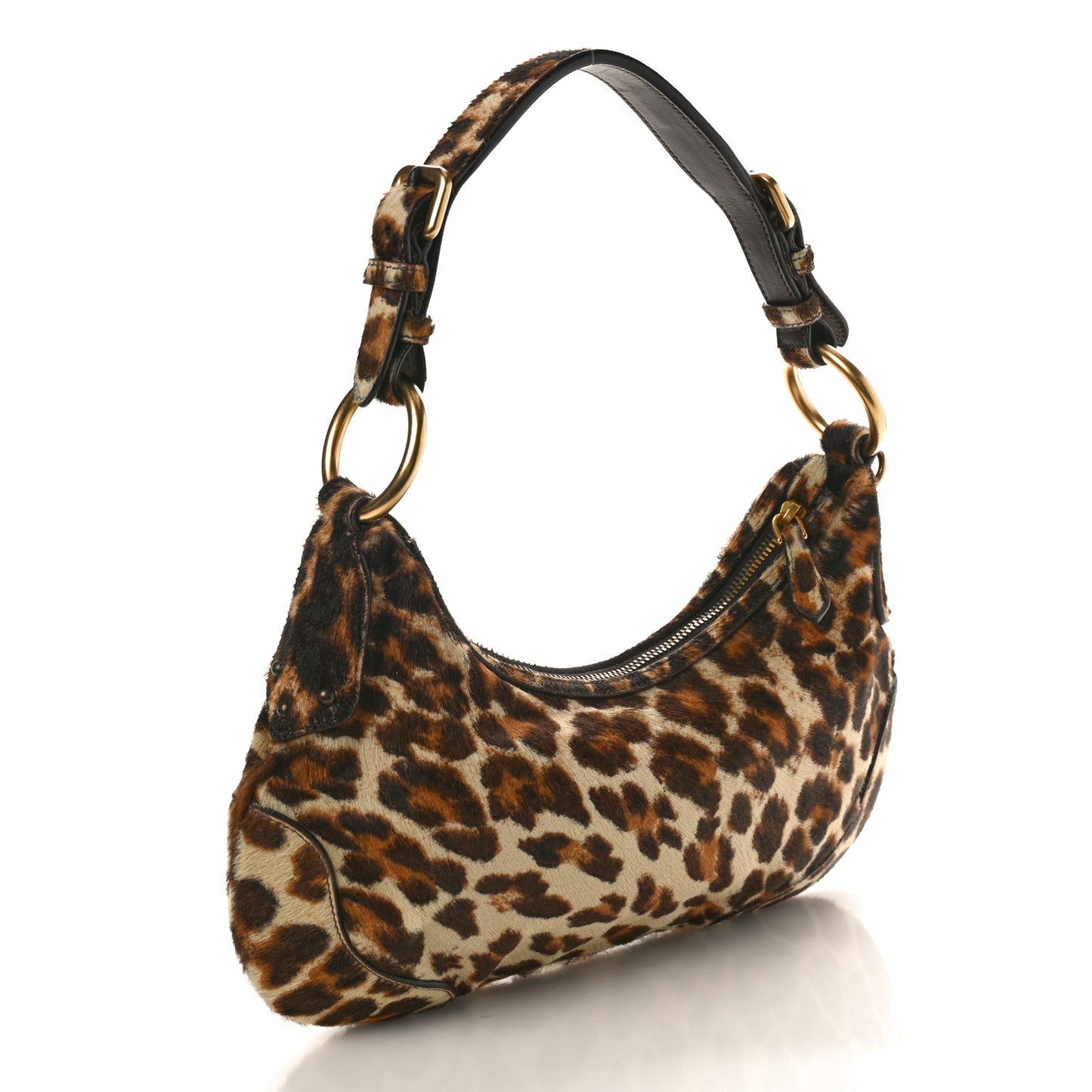 This is an authentic PRADA Cavallino Leopard Print Shoulder Bag in Avorio. This stylish shoulder bag is completely covered in leopard printed calf hair. The bag features a matching leopard print shoulder strap. The crossover flap opens to a compact dark brown Prada monogram jacquard fabric interior with a zipper pocket.Follow this item for alerts. Prada is a registered trademark of Prada. FASHIONPHILE is not affiliated with Prada.