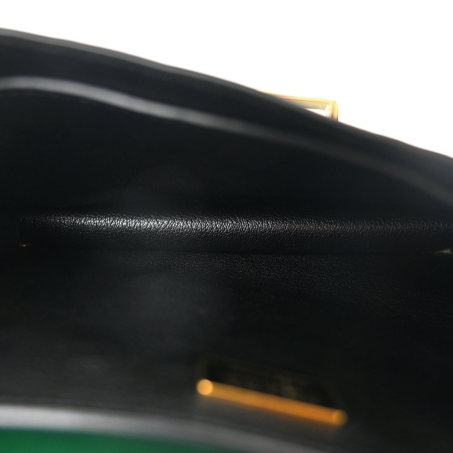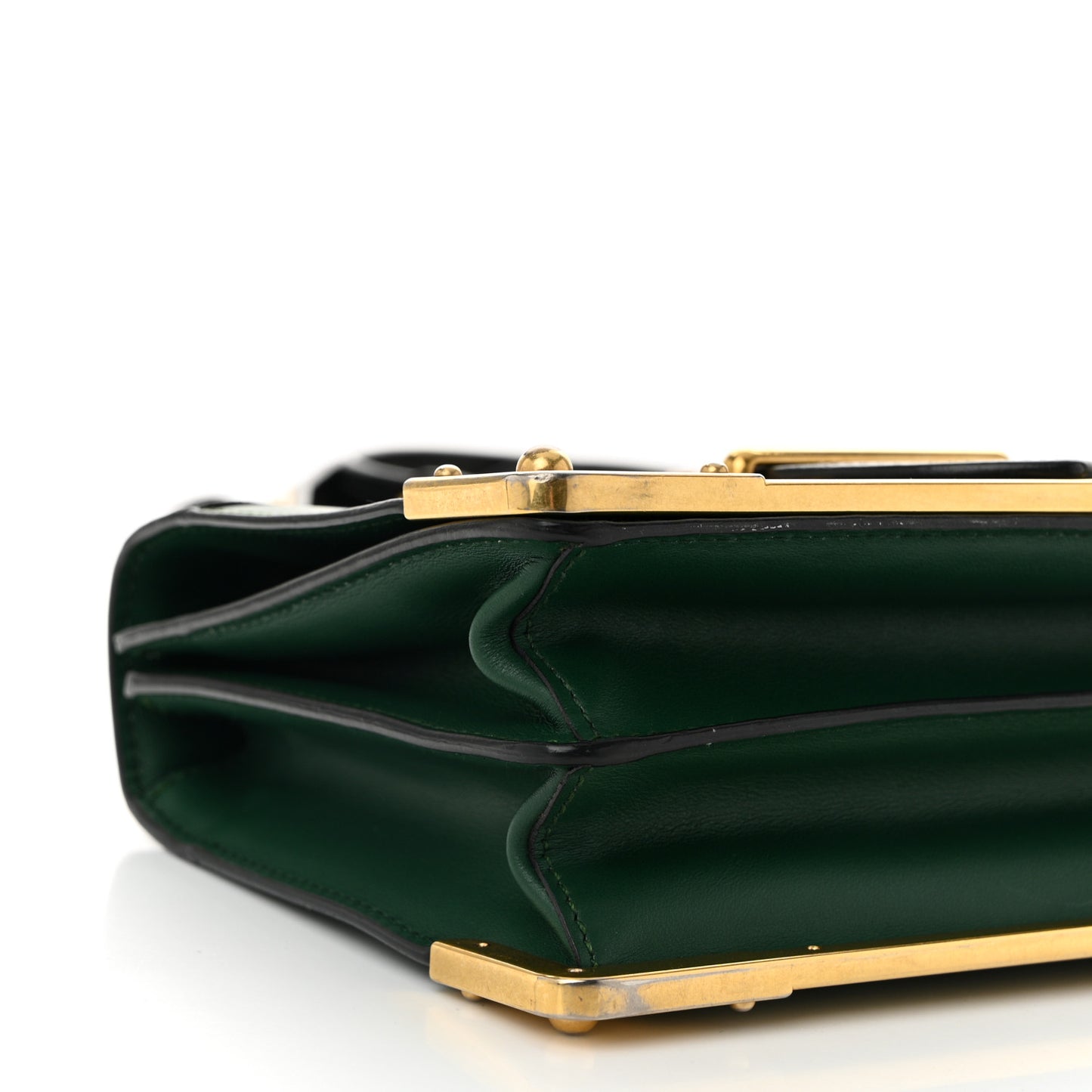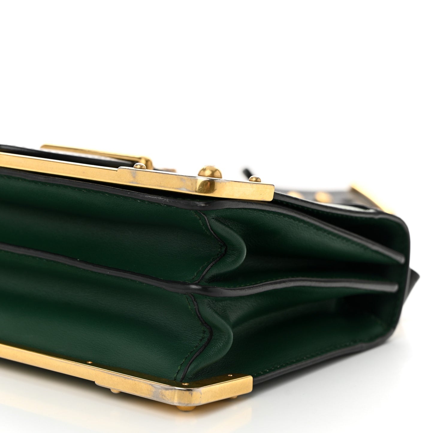 This is an authentic PRADA City Calf Saffiano Cahier Bag in Biliardo and Black. This stylish crossbody bag is crafted of calfskin leather in dark green and black. The bag features black saffiano crossgrain leather trim on the top, a gold chain shoulder strap with a leather shoulder pad, and brass hardware including corner plates and a bar closure. The bag opens to a partitioned black leather interior with patch pockets.Follow this item for alerts. Prada is a registered trademark of Prada. FASHIONPHILE is not affiliated with Prada.