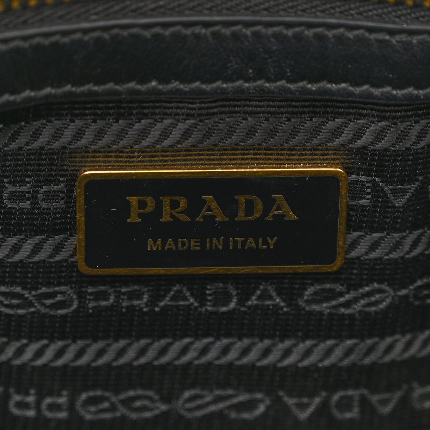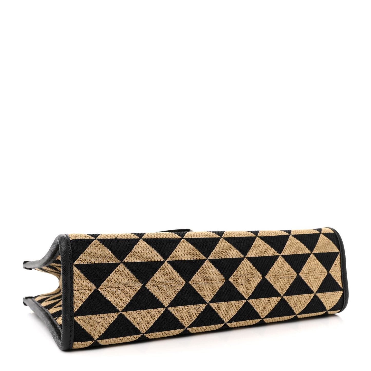 This is an authentic PRADA Jacquard Saffiano Triangolo Symbole Embroidered Small Tote in Black and Corda. This stylish tote is crafted of durable beige and black embroidered fabric in a woven pattern. It features a gold Prada logo, matching top handles, and an optional black Saffiano leather shoulder strap with gold hardware. The top opens to a black Prada jacquard fabric interior with zipper and patch pockets.Follow this item for alerts. Prada is a registered trademark of Prada. FASHIONPHILE is not affiliated with Prada.
