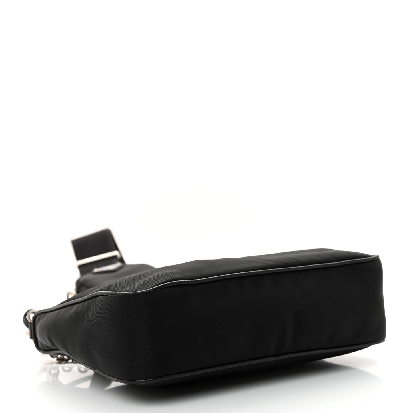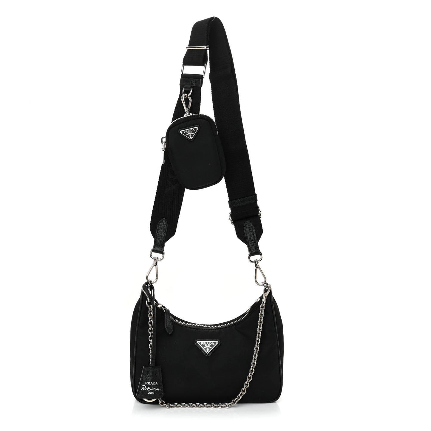 This is an authentic PRADA Nylon Re-Edition 2005 Shoulder Bag in Black. This bag is crafted of fine nylon in black with matching black saffiano leather trim and silver hardware. The bag features an optional silver chain-link strap. The top zipper opens to a black Prada monogram jacquard fabric interior.Follow this item for alerts. Prada is a registered trademark of Prada. FASHIONPHILE is not affiliated with Prada.