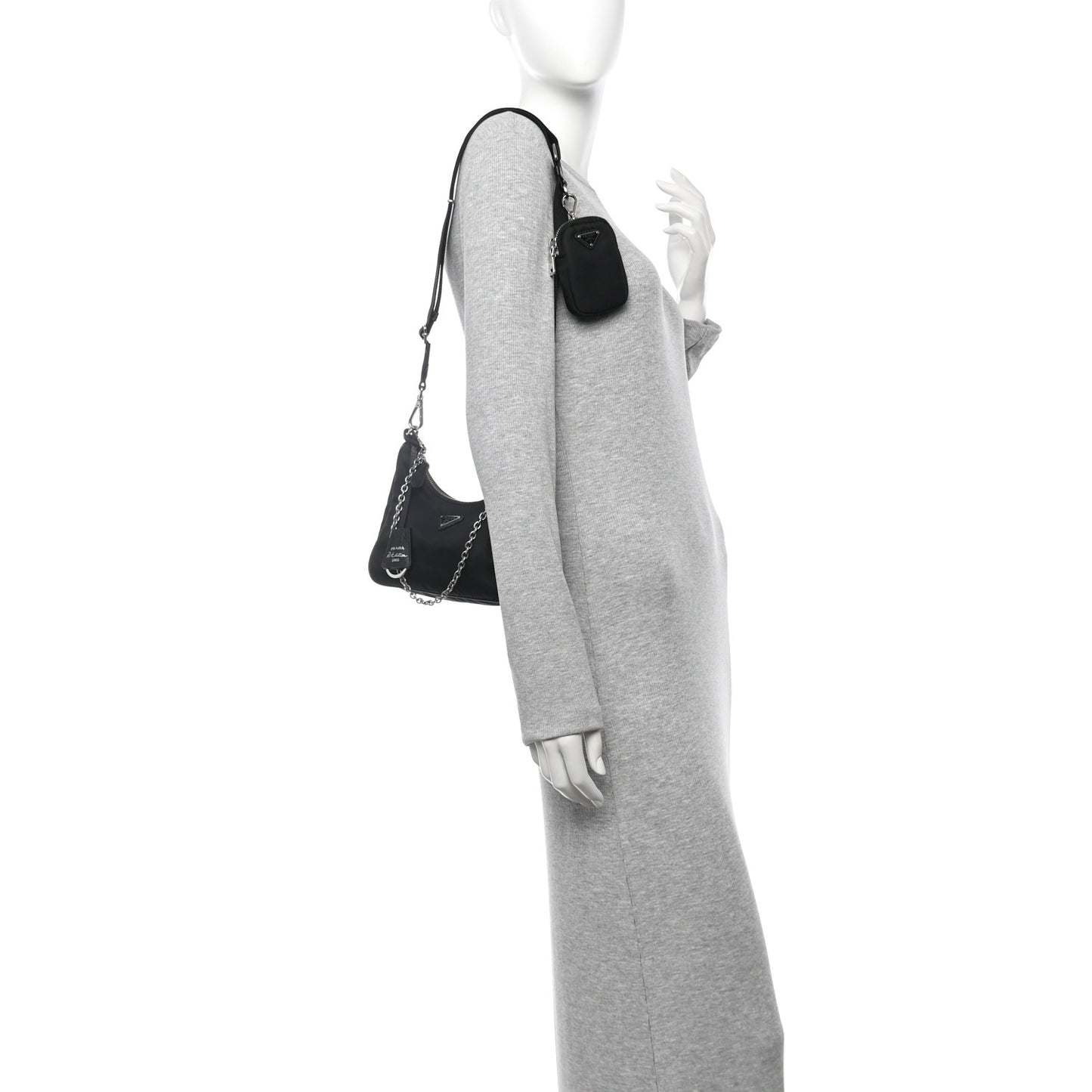 This is an authentic PRADA Nylon Re-Edition 2005 Shoulder Bag in Black. This petite messenger bag is crafted of fine nylon in black with matching black saffiano leather trim and silver hardware. The set features an adjustable black nylon shoulder strap, an optional silver chain-link strap, and a removable coin purse. The top zipper opens to a black Prada monogram jacquard fabric interior.Follow this item for alerts. Prada is a registered trademark of Prada. FASHIONPHILE is not affiliated with Prada.