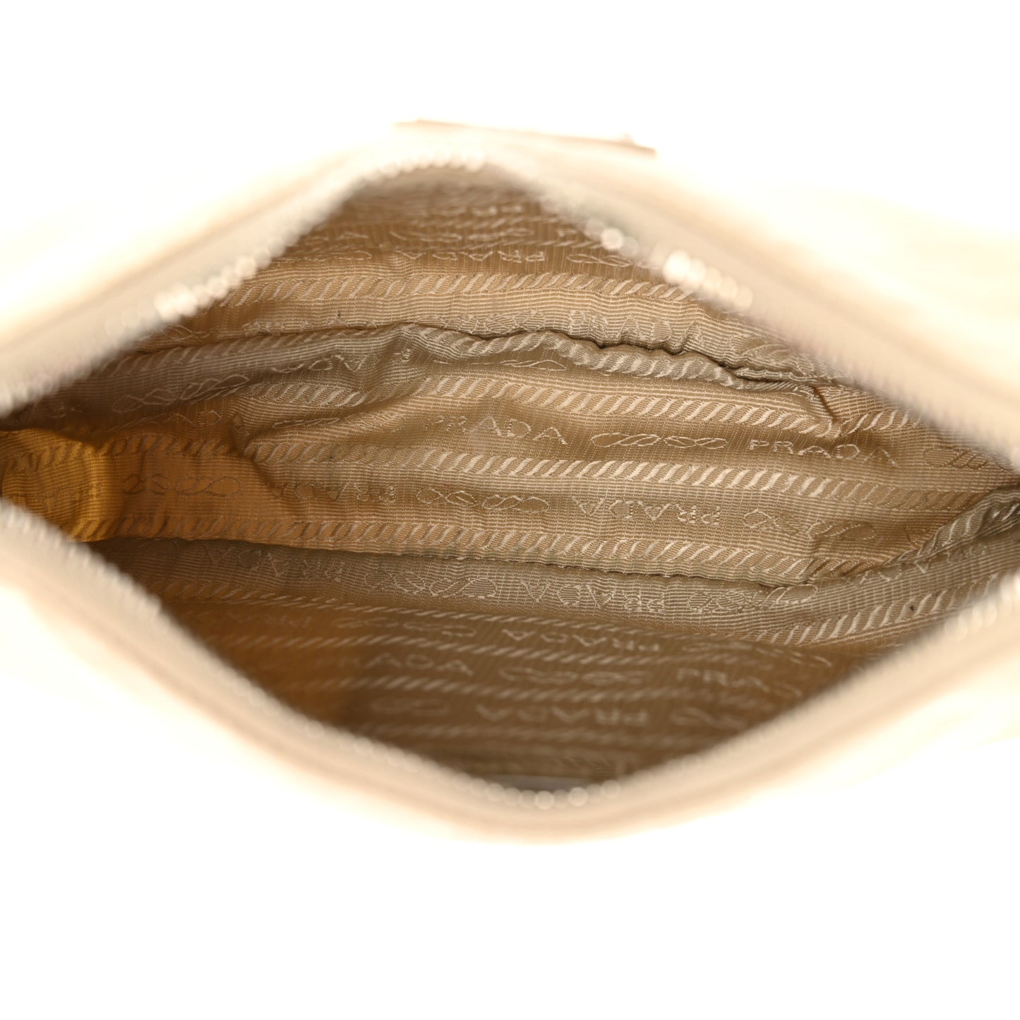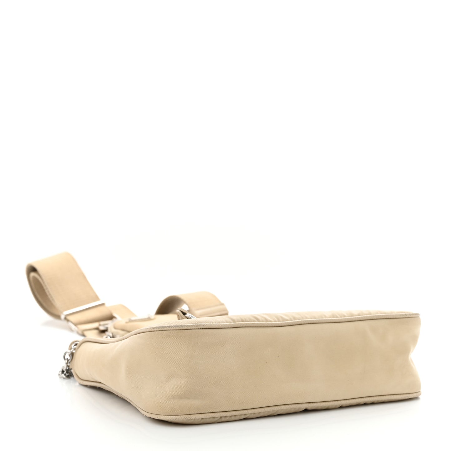 This is an authentic PRADA Nylon Re-Edition 2005 Shoulder Bag in Cammeo. This petite messenger bag is crafted of fine nude nylon with polished silver hardware. It features saffiano cross-grain leather trim an adjustable nude nylon crossbody strap, a silver chain strap, and a removable coin purse. The top zipper opens to a nude Prada monogram jacquard interior.Follow this item for alerts. Prada is a registered trademark of Prada. FASHIONPHILE is not affiliated with Prada.