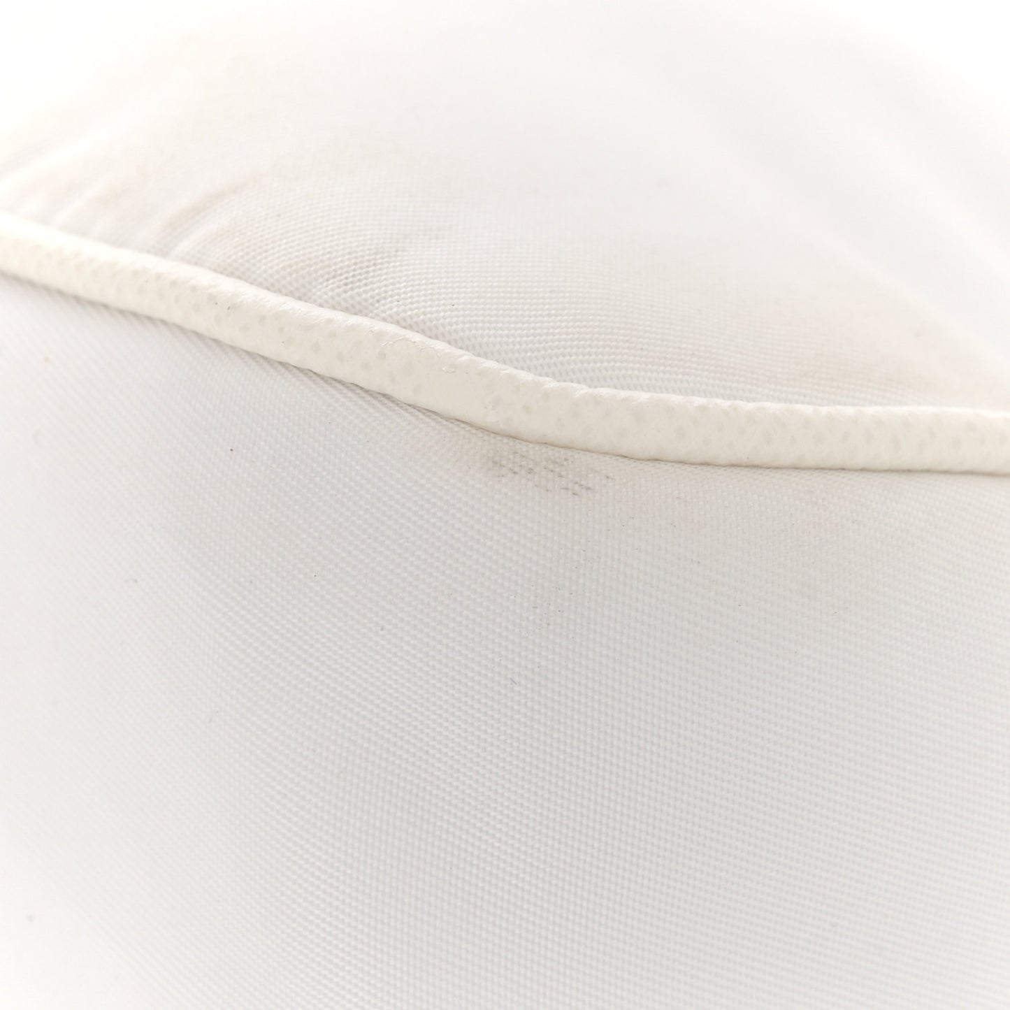 This is an authentic PRADA Nylon Re-Edition 2005 Shoulder Bag in White. This messenger bag is crafted of white nylon with polished silver hardware. It features saffiano cross-grain leather trim and a silver chain strap. The top zipper opens to a beige Prada monogram jacquard interior.Follow this item for alerts. Prada is a registered trademark of Prada. FASHIONPHILE is not affiliated with Prada.