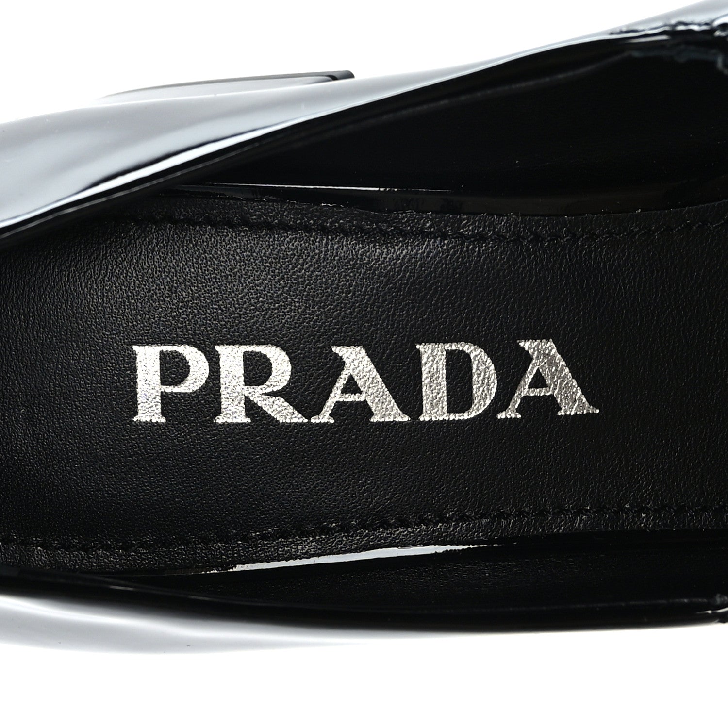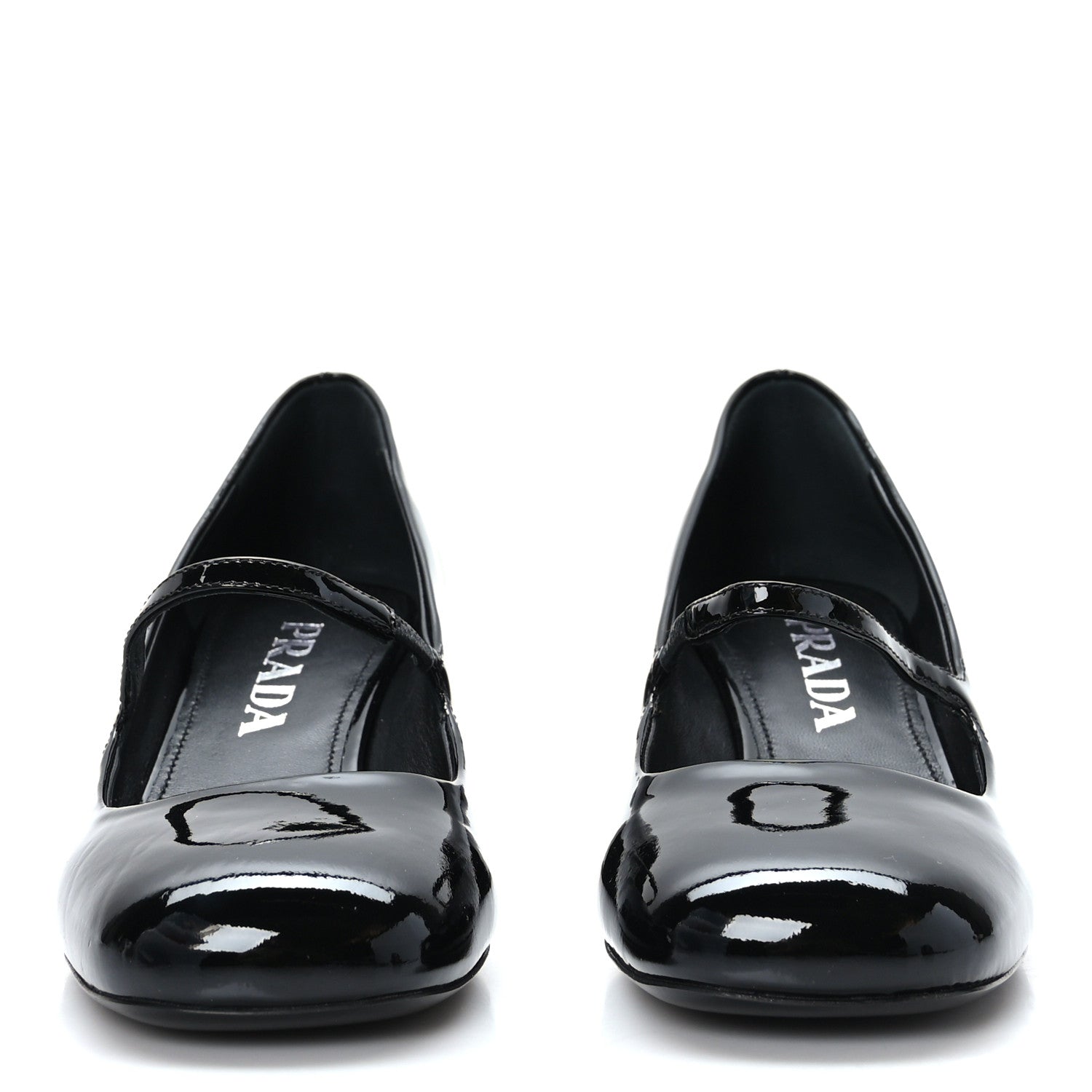 This is an authentic pair of PRADA Patent Mary Jane 45mm Pumps 36 in Black. These stylish pumps have a 2-inch heel and are crafted of patent calfskin leather.Follow this item for alerts. Prada is a registered trademark of Prada. FASHIONPHILE is not affiliated with Prada.