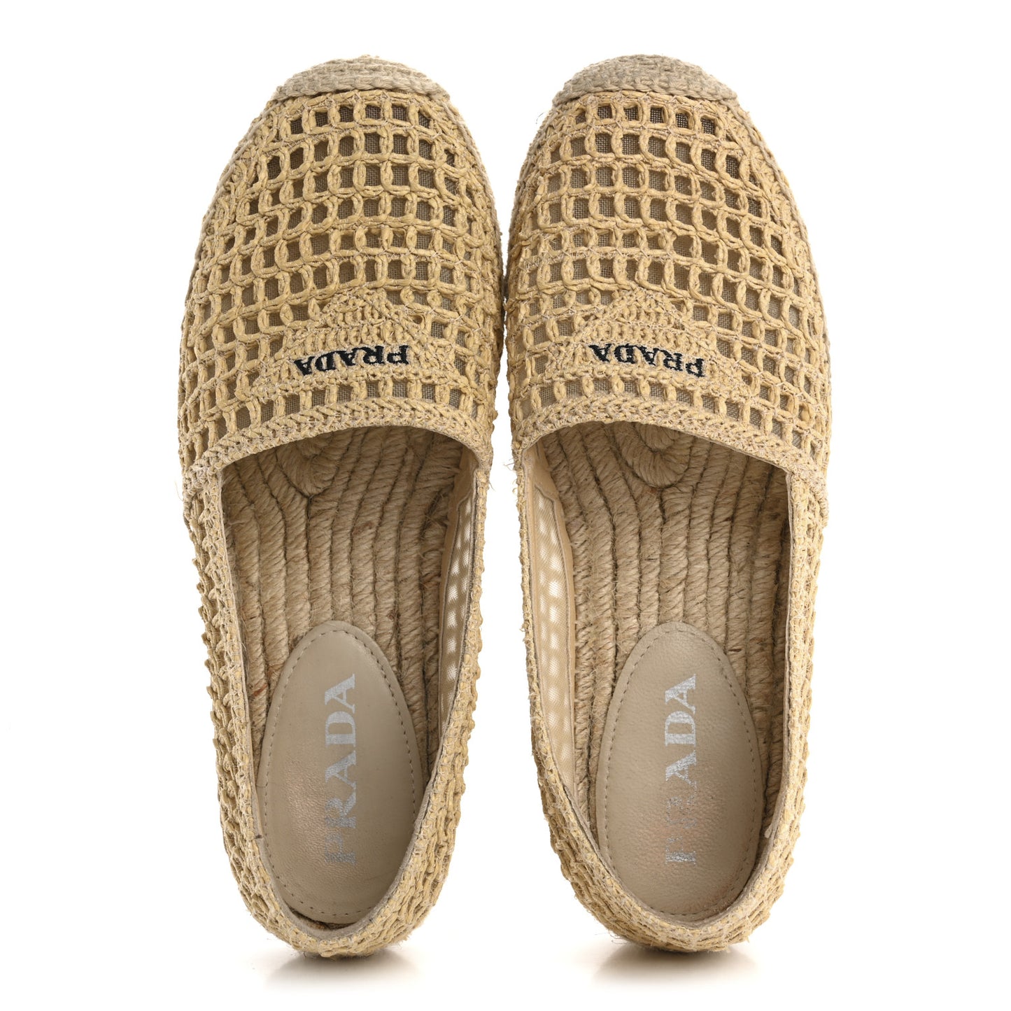 Prada/ Accessories/ Shoes /Prada Raffia Triangle Logo Crochet 20mm Espadrilles 38 Naturale