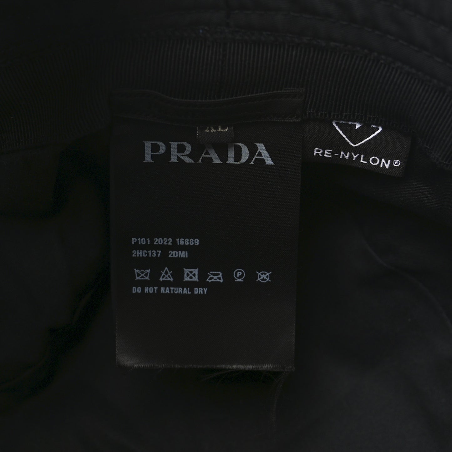 Prada/ Accessories/ Hats /Prada Re-Nylon Metal Triangle Logo Womens Bucket Hat XL Black