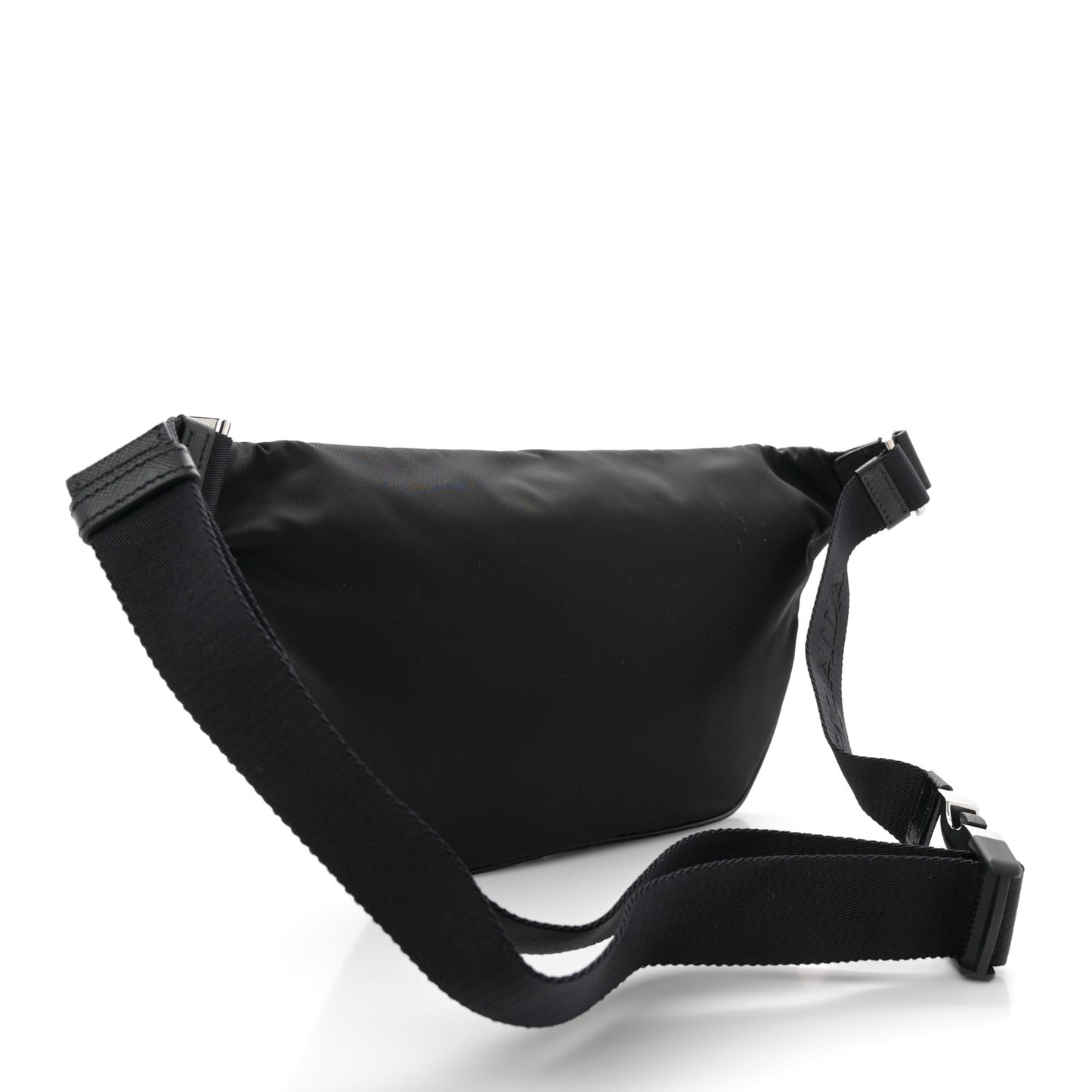 This is an authentic PRADA Re-Nylon Saffiano Belt Bag in Black. This chic belt bag is crafted of recycled nylon fabric and saffiano leather trim in black and a Prada triangle logo. The bag features a long zipper front pocket and a black nylon belt with polished silver hardware. The top zipper opens to a black fabric interior.Follow this item for alerts. Prada is a registered trademark of Prada. FASHIONPHILE is not affiliated with Prada.
