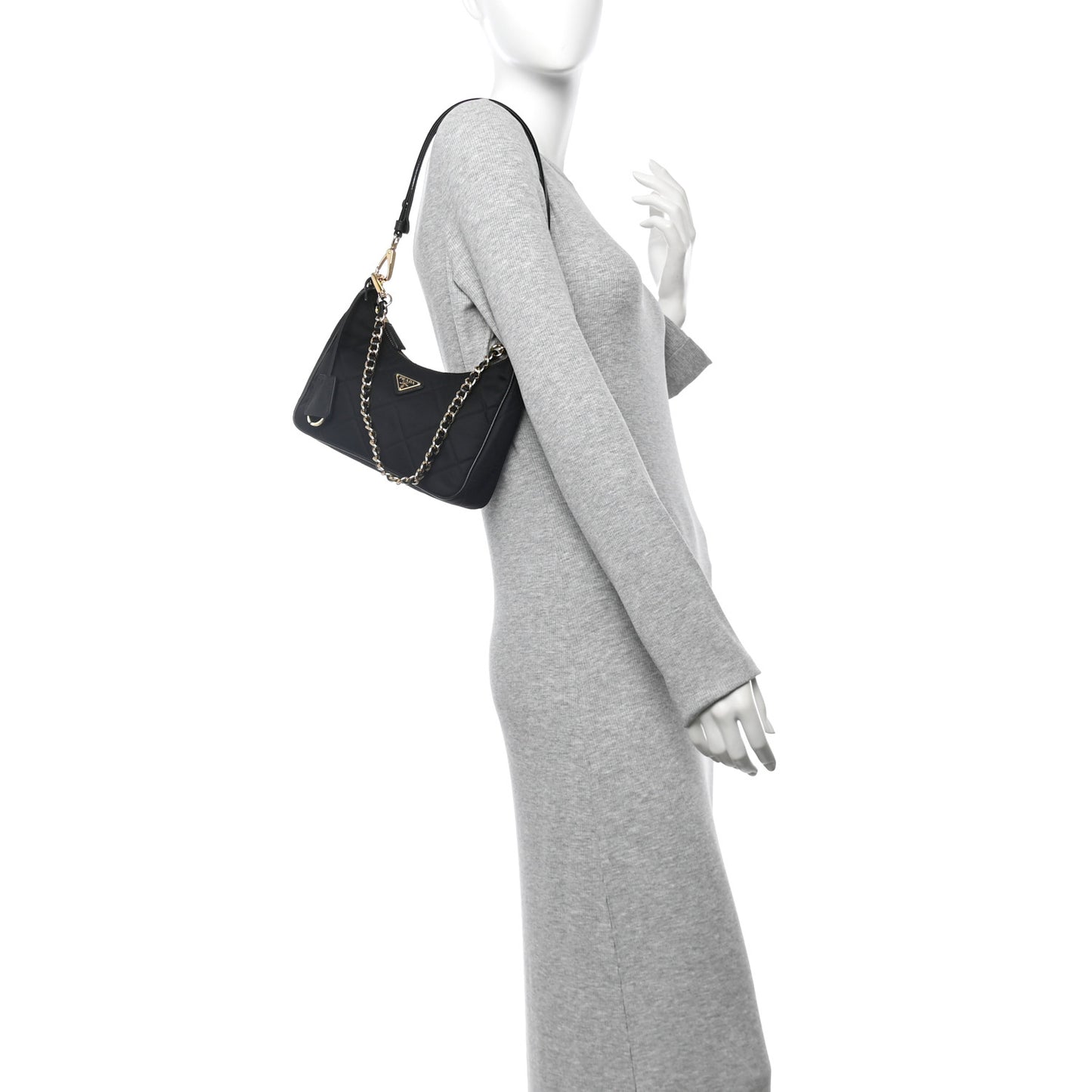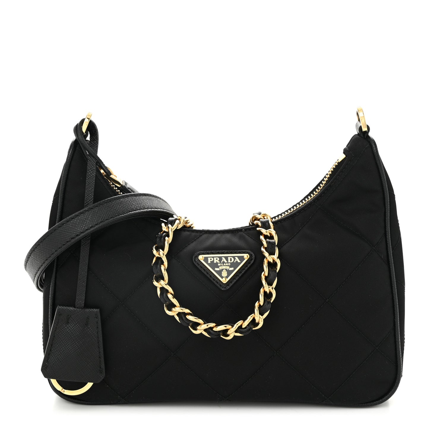 Prada/ Bags/ Shoulder Bags /Prada Re-Nylon Saffiano Stitched Mini Re-Edition 1995 Chaine Shoulder Bag Black