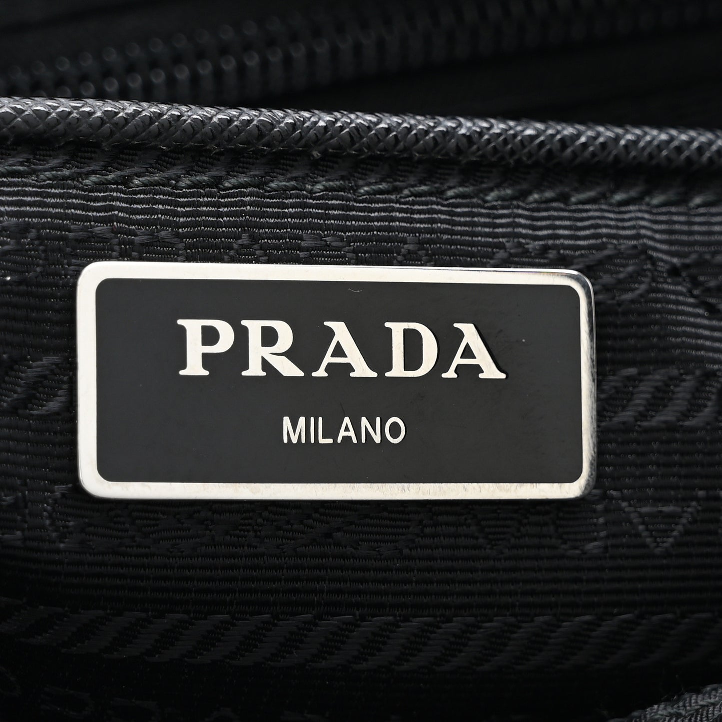 Re-Nylon Vela Saffiano Pocket Double Buckle Messenger Shoulder Bag Black