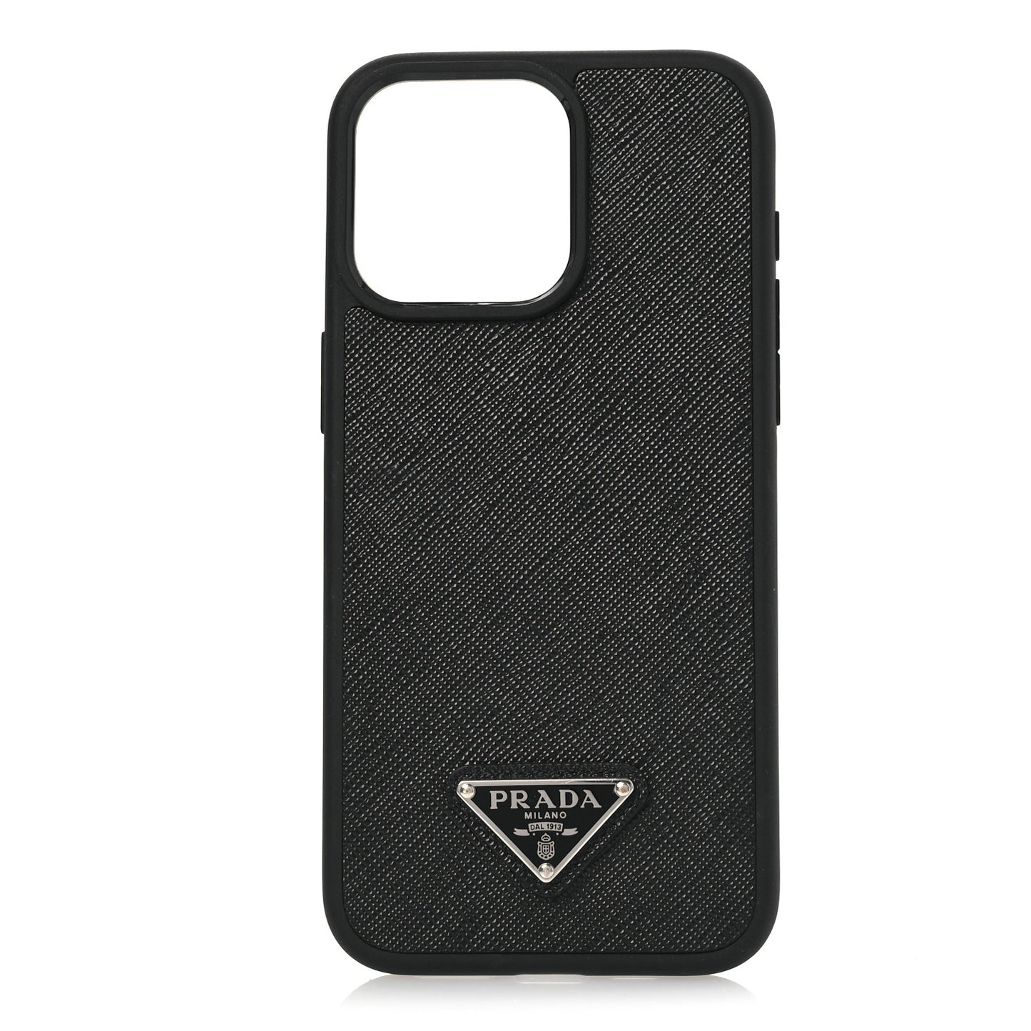 This is an authentic PRADA Saffiano iPhone 15 Pro Max Case in Black. This chic phone case is crafted in black with saffiano leather. It features Prada's iconic triangle.Follow this item for alerts. Prada is a registered trademark of Prada. FASHIONPHILE is not affiliated with Prada.
