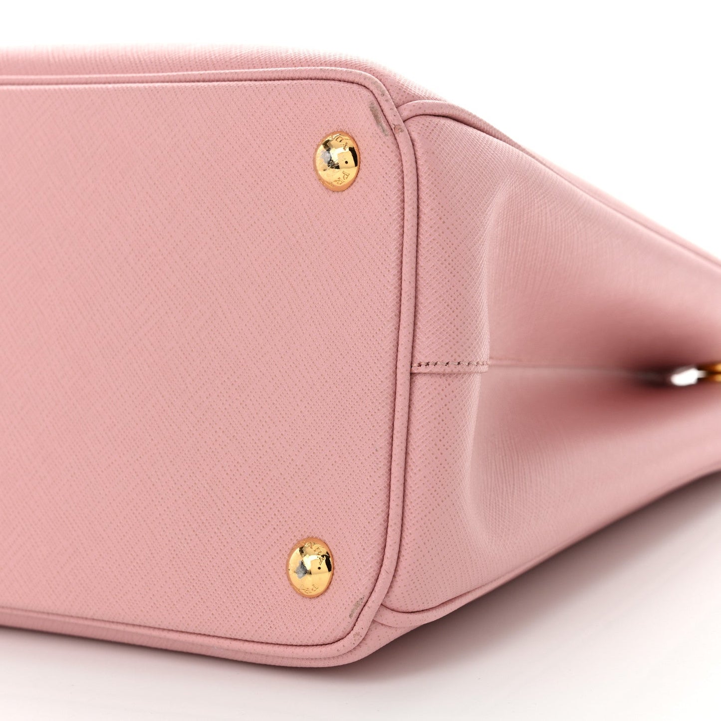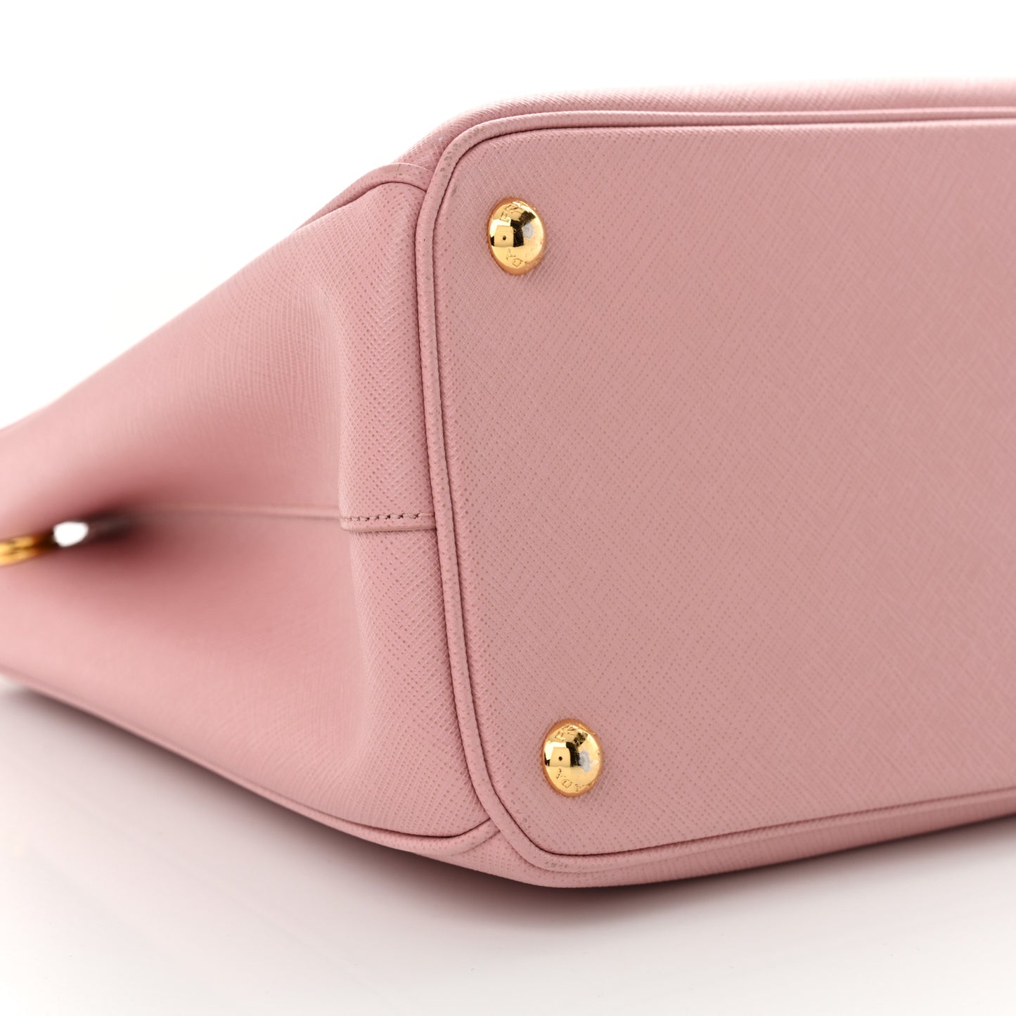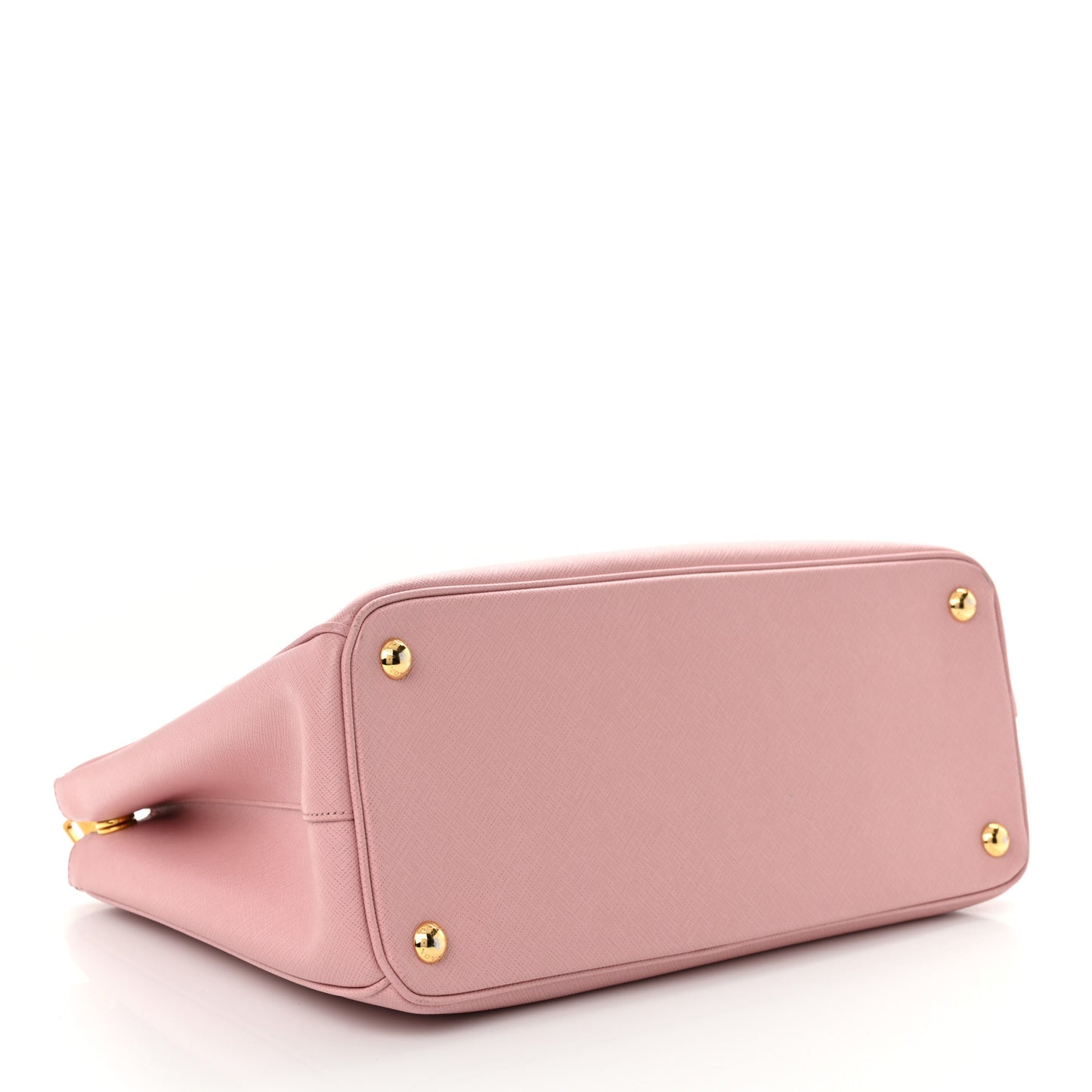 This is an authentic PRADA Saffiano Medium Galleria Double Zip Tote in Orchidea. This chic tote is crafted of Saffiano cross-grain leather in pink. The bag features rolled leather top handles with polished brass links, an optional shoulder strap with brass clasps, with a key ring bag charm. The top is open and features two full-length side zippered compartments and a matching Prada logo jacquard interior with zipper and patch pockets.Follow this item for alerts. Prada is a registered trademark of Prada. FASHIONPHILE is not affiliated with Prada.