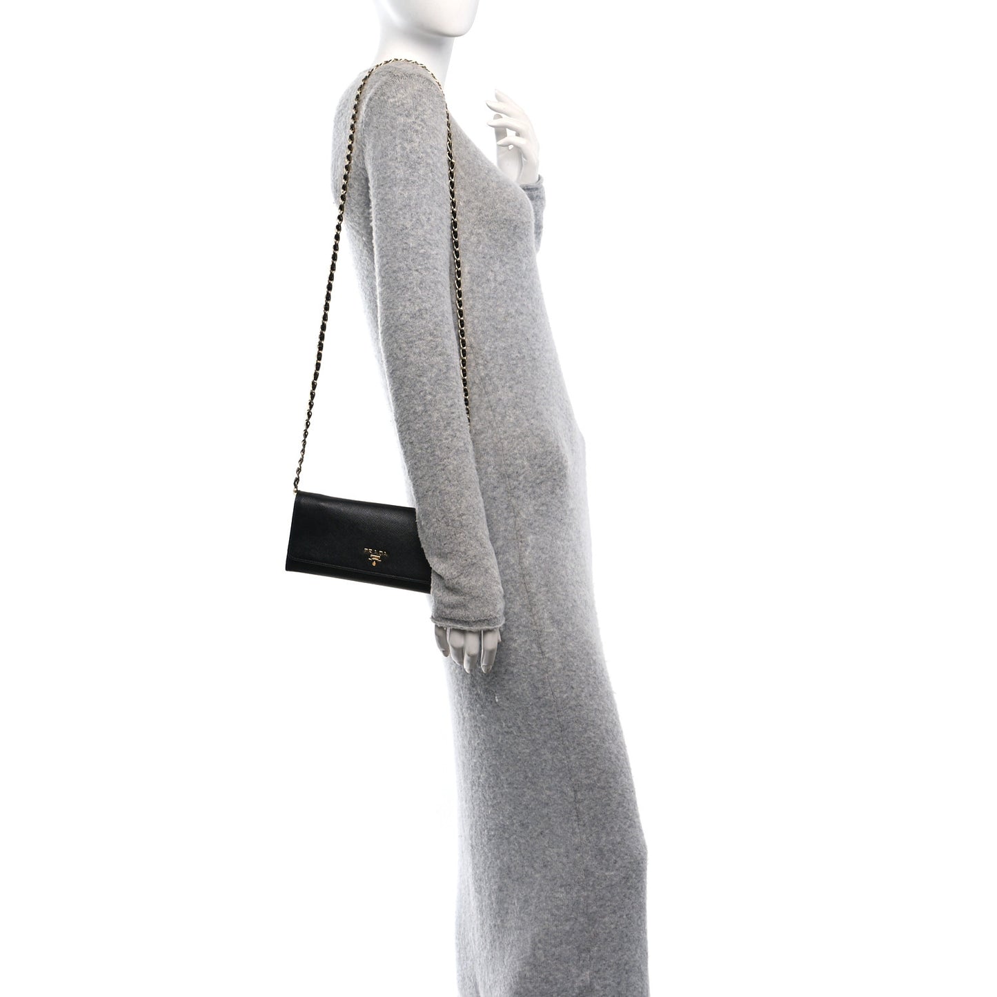 Prada/ Accessories/ Crossbody /Prada Saffiano Metal Oro Chain Wallet Black