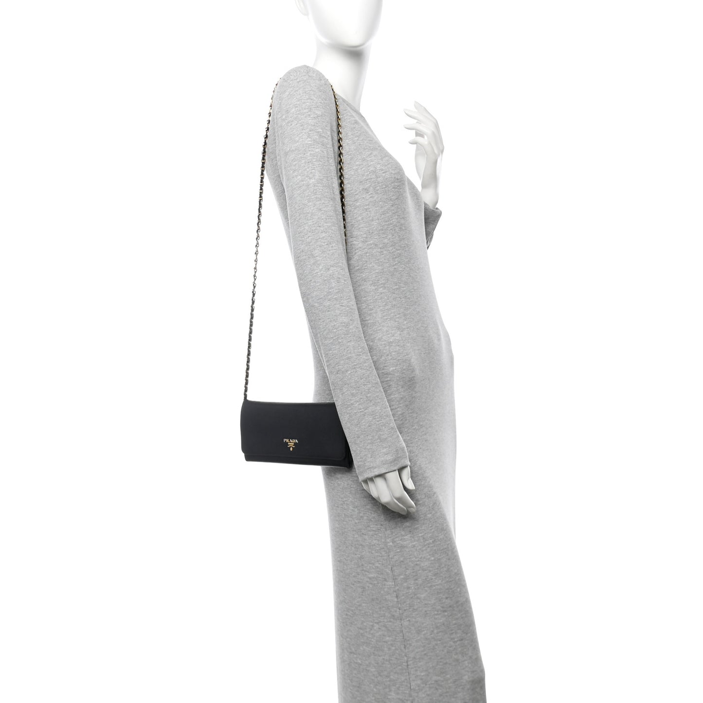 Prada/ Accessories/ Crossbody /Prada Saffiano Metal Oro Chain Wallet Black