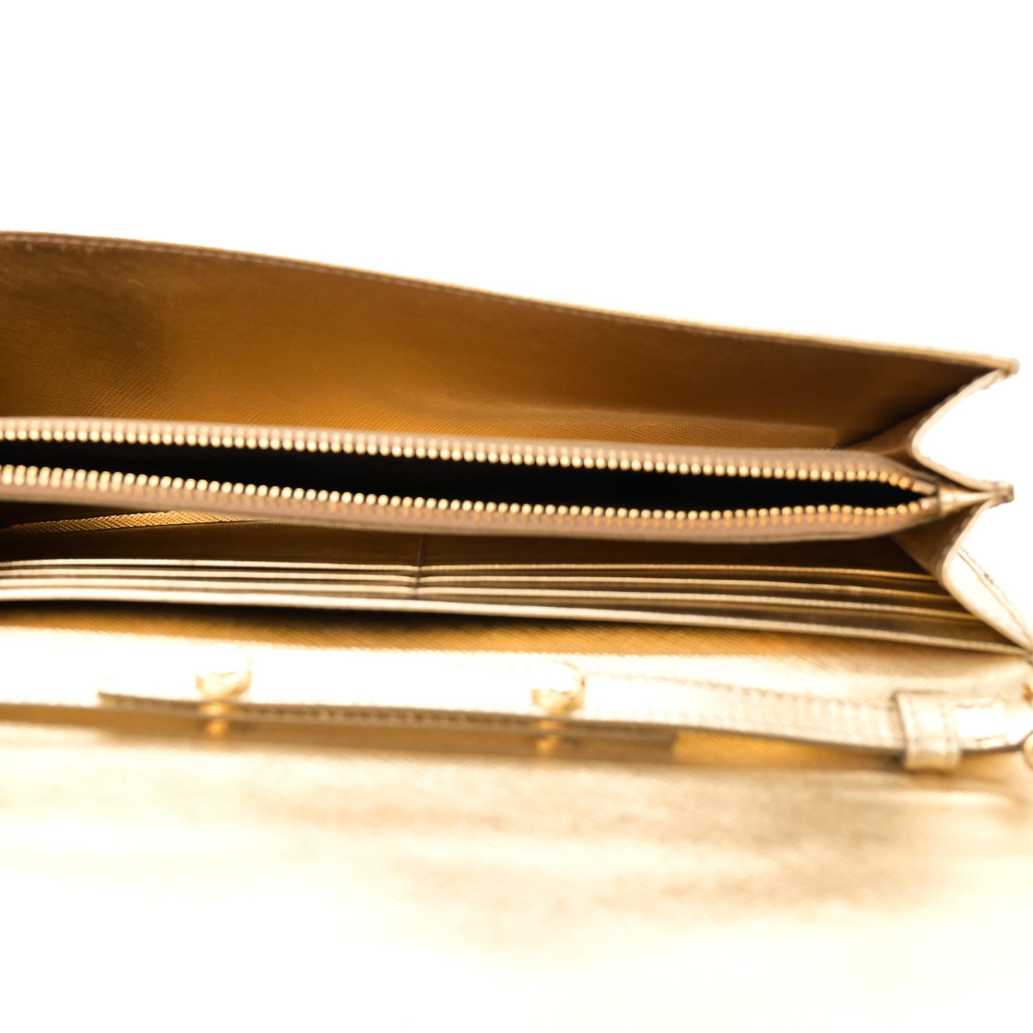 Prada/ Bags/ Wallet Style /Prada Saffiano Metal Oro Chain Wallet Platino