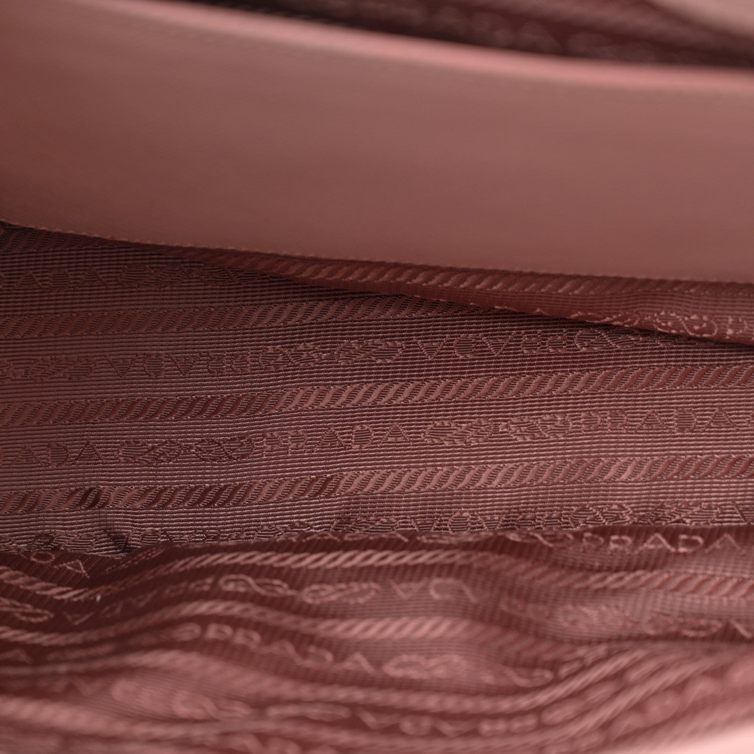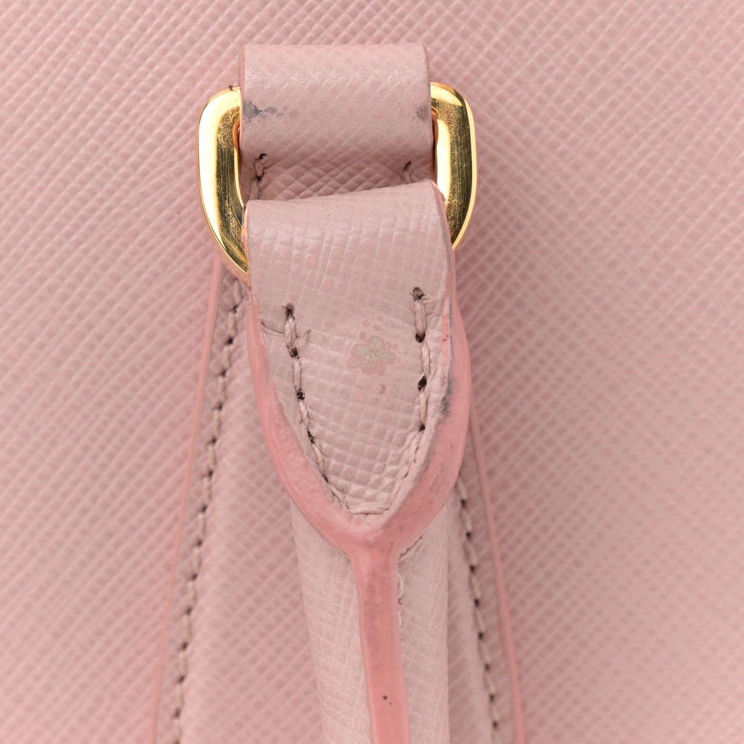 This is an authentic PRADA Saffiano Lux Mini Galleria Double Zip Tote in Orchidea. This chic tote is crafted of saffiano cross-grain leather in pink. The bag features a full zipper pocket on the front and the rear, rolled leather top handles with polished gold links, and an optional, adjustable shoulder strap. The top is open to a pink Prada monogram jacquard fabric interior with zipper and patch pockets.Follow this item for alerts. Prada is a registered trademark of Prada. FASHIONPHILE is not affiliated with Prada.